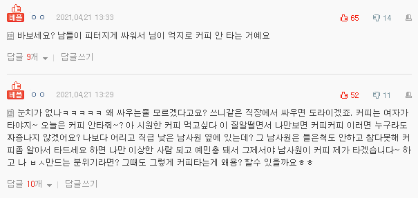 글쓴씨 진짜 미안한데 커피 세잔만 부탁해요.