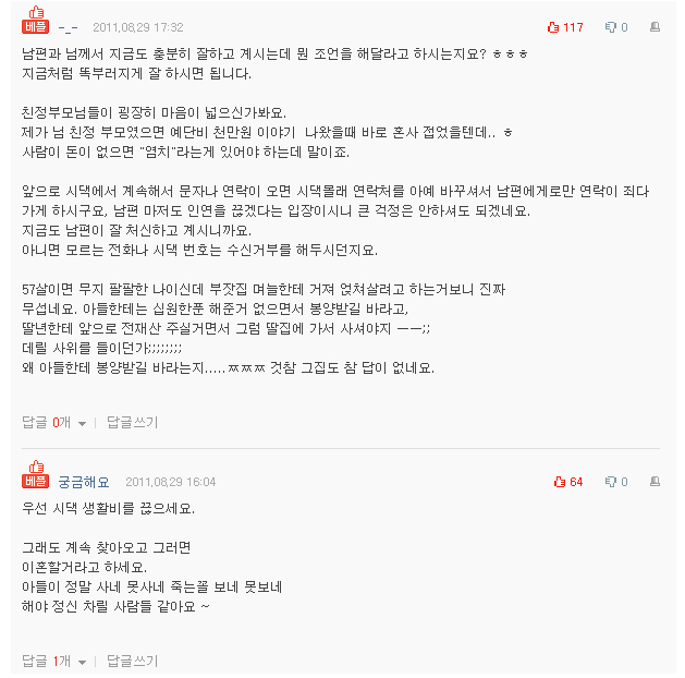 | 네이트판 레전드 - 못된심뽀에 거지근성이 합쳐진 시댁에 화나요 2편 (0) | 2021.07.01 |