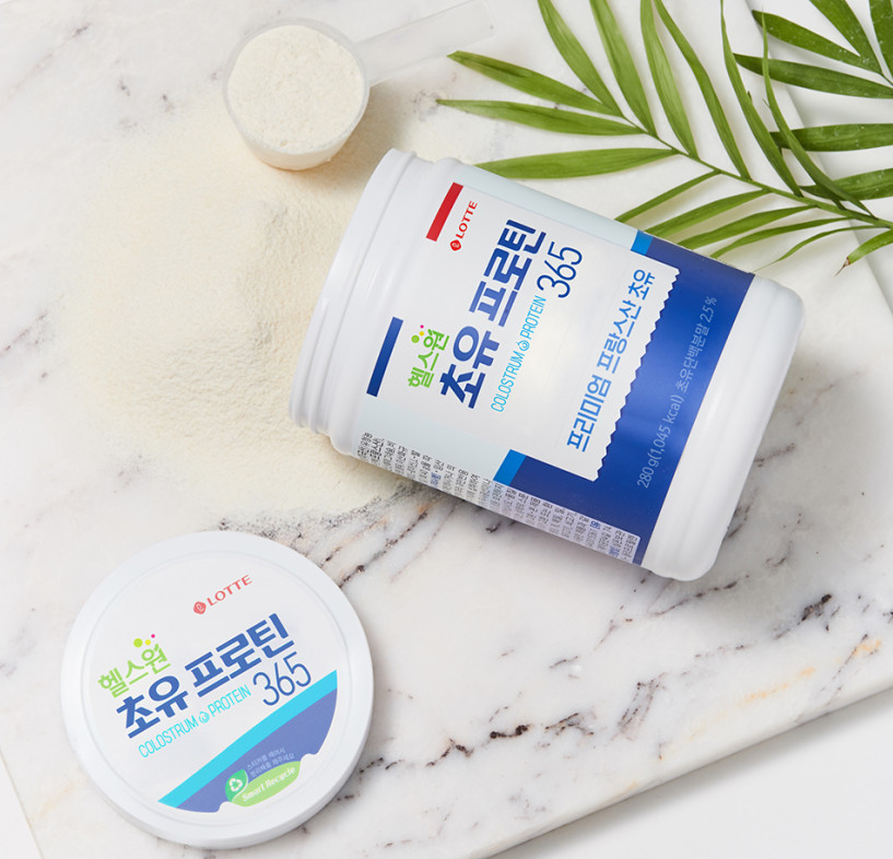 롯데헬스원에서 출시한 프랑스산 프리미엄 고단백질 제품 " 초유프로틴365 " 입니다