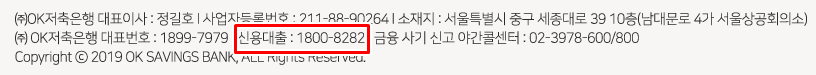 OK저축은행 안에 있는 신용대출 부서번호입니다.