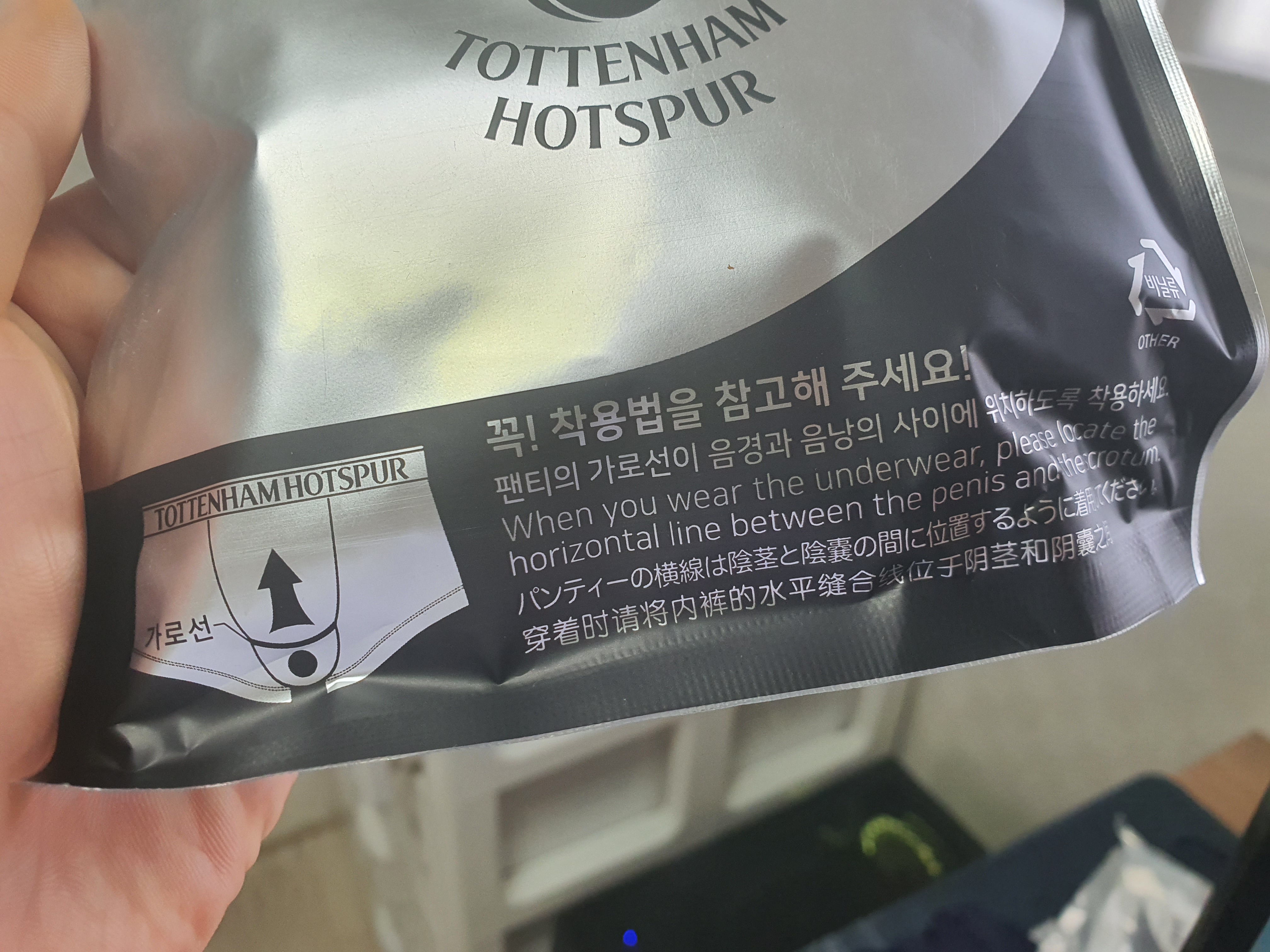 팬티상단 허리밴드에 토트넘 홋스퍼 마크가 박혀있습니다.
