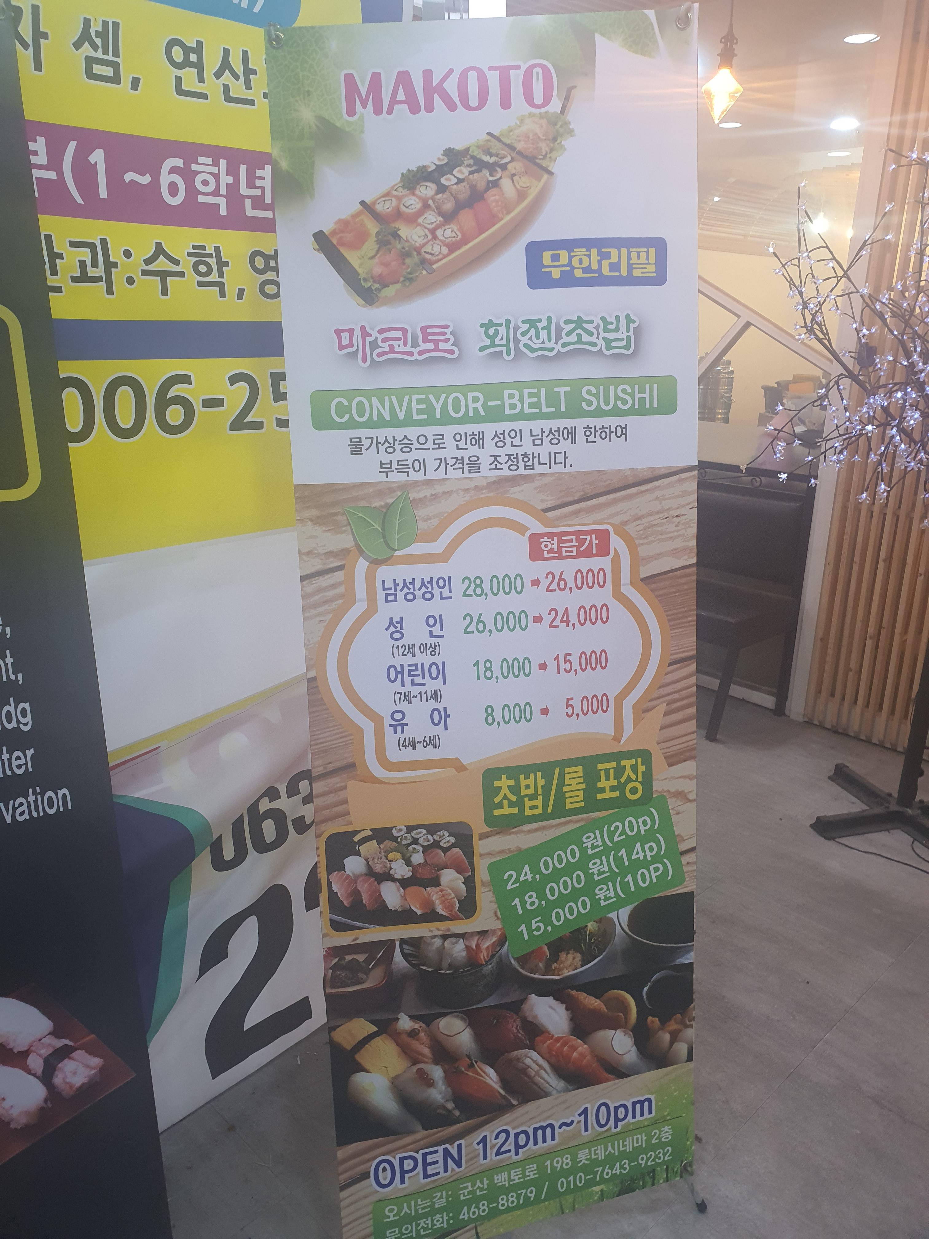 무한리필 회전초밥 마코토 영업시간 및 가격