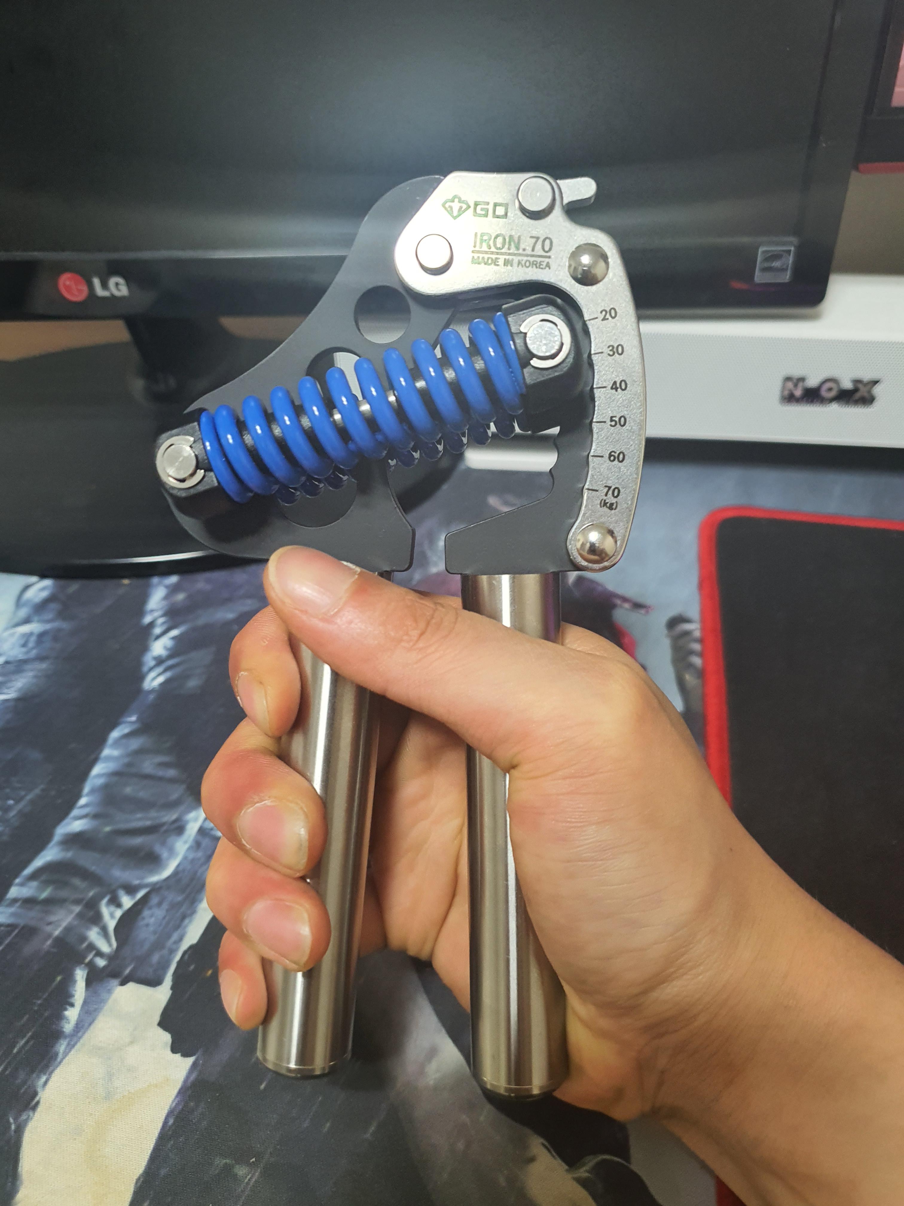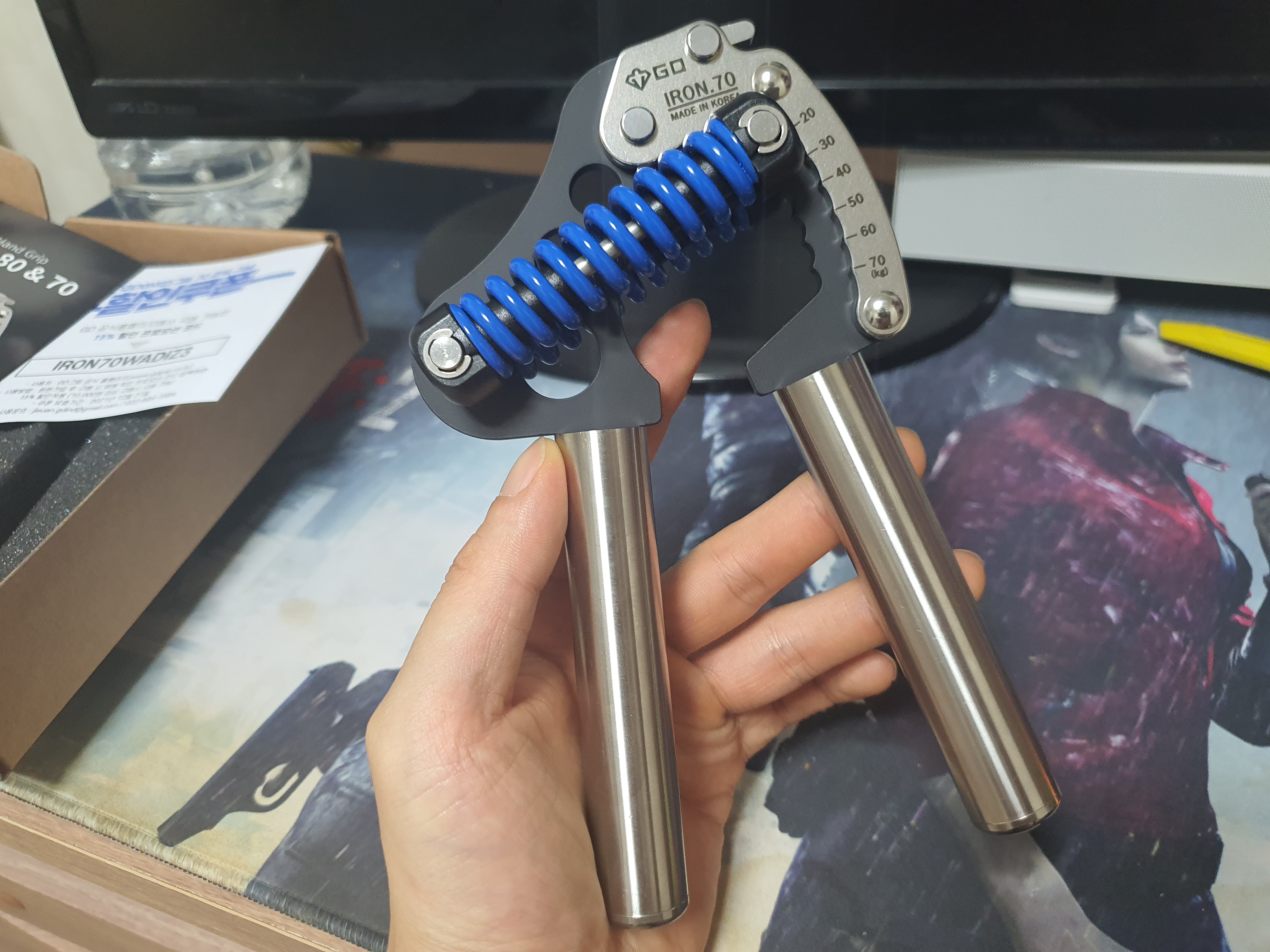 원래는 GD 아이언 그립 제품이 80~90 이렇게만 판매가 되었는데 힘이 약한 남자나 여자들을 위해서 와디즈에서 펀딩을 해서 만든 제품이 GD 아이언 그립 70인데 왠지 저도 70악력기로 사용해야만 할거같아서 구매했습니다.