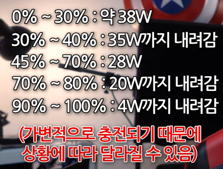 그 이유는 45W 충전기를 연결하면 30%까지는 25W 충전기보다 매우 빠르게 충전이 됩니다. 하지만 45% 넘어가는 순간부터 28W로 떨어지며 완충에 다가갈수록 전력이 기하급수적으로 내려갑니다.