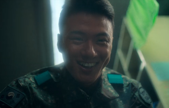 헌병 근무 교대를 하는 장면인데 선임 조석봉(조현철)이 안준호(정해인)에게 따뜻한 말로 다독거려주며 명대사를 날립니다. " 아픔없는 교훈에는 의미가 없지, 인간은 희생없인 아무것도 없을수 없으니까 " 라는 대사로 나중에는 우리는 선임처럼 그러지말자라는 말로 천사같은 선임으로 정말 잘 표현했습니다.