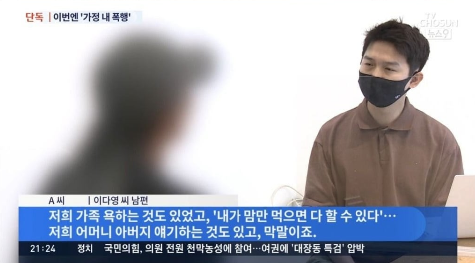 남편 A씨는 인터뷰로 통해 " 저희 가족 욕하는것도 있었고 이다영이 말하길 '내가 맘만 먹으면 다 할수 있다... 저희 어머니 아버지 얘기하는 것도 있고 막말이죠 " 자신이 들었던 모욕과 멸시에 대해 이야기를 했습니다.
