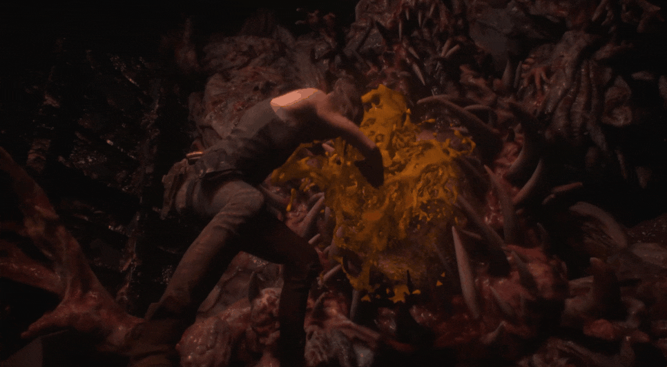 기존 좀비게임들은 주인공의 체력이 바닥나고 끝났을때 좀비들에게 물어뜯기는 모션으로 게임이 종료되는 방식이 대부분이었는데 바이오하자드 RE:2는 주인공이 죽지 않았음에도 불구하고 좀비들에게 공격당하면 위에 사진처럼 목을 물어뜯기는 모션을 보여주면서 게임을 하는 유저는 컨트롤에 함에 있어 더 조심하게 되고 공포스러움을 더욱 더 몸으로 체감할수 있게 게임의 퀄리티를 한껏 높인것이 이번 바이오하자드 RE:2의 특징이 아닐까 싶습니다.