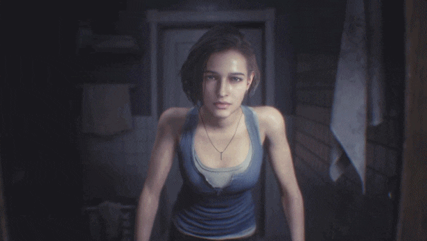 게임 시작은 우리의 여주인공 질 발렌타인이 화장실 앞에서부터 스토리가 진행이 됩니다. 갑자기 들어닥친 네메시스에 의해 도망을 다니며 좀비들을 죽이고 박살내면서 라쿤시티를 빠져나오는게 이번 바이오하자드 RE:3의 스토리입니다.