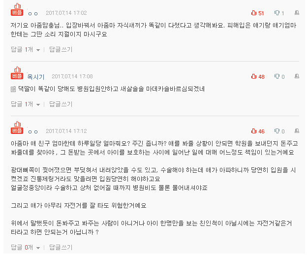 | 네이트판 레전드 - 유치원교사면 무조건 애를 맡아서 봐줘야 하나요? (0) | 2021.10.14 |