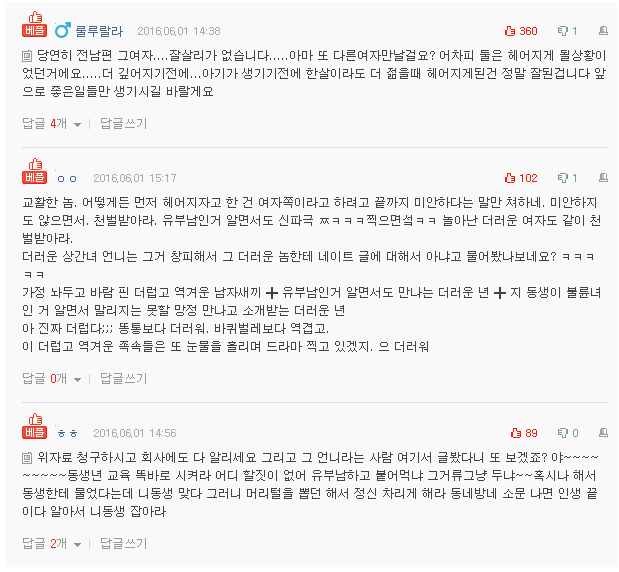 결혼 1년만에 남편 바람나서 헤어졌단말..