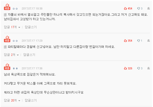 앞집인데 괜히 큰소리 내기 싫어서 내려왔는데