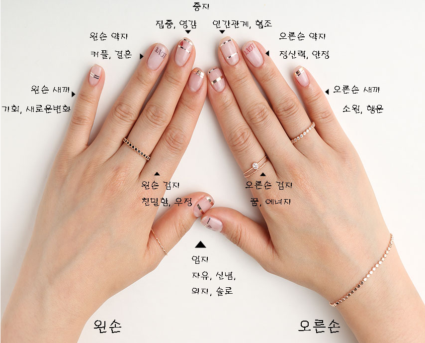 왼손 새끼 손가락에 낀 반지는 변화를 받아들이는데 도움을 주는 역할을 하고 오른손 새끼손가락에 맞는 적절한 반지를 끼게 되면 당신의 행운 or 목적을 이룰수 있는 계기를 만들어 줄 것입니다.