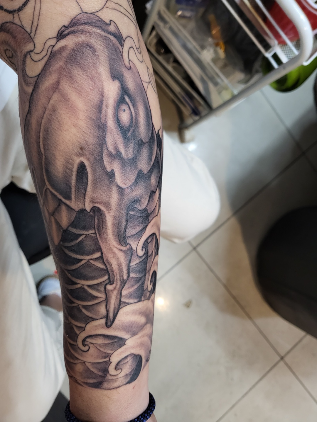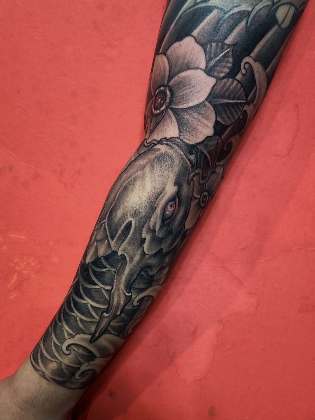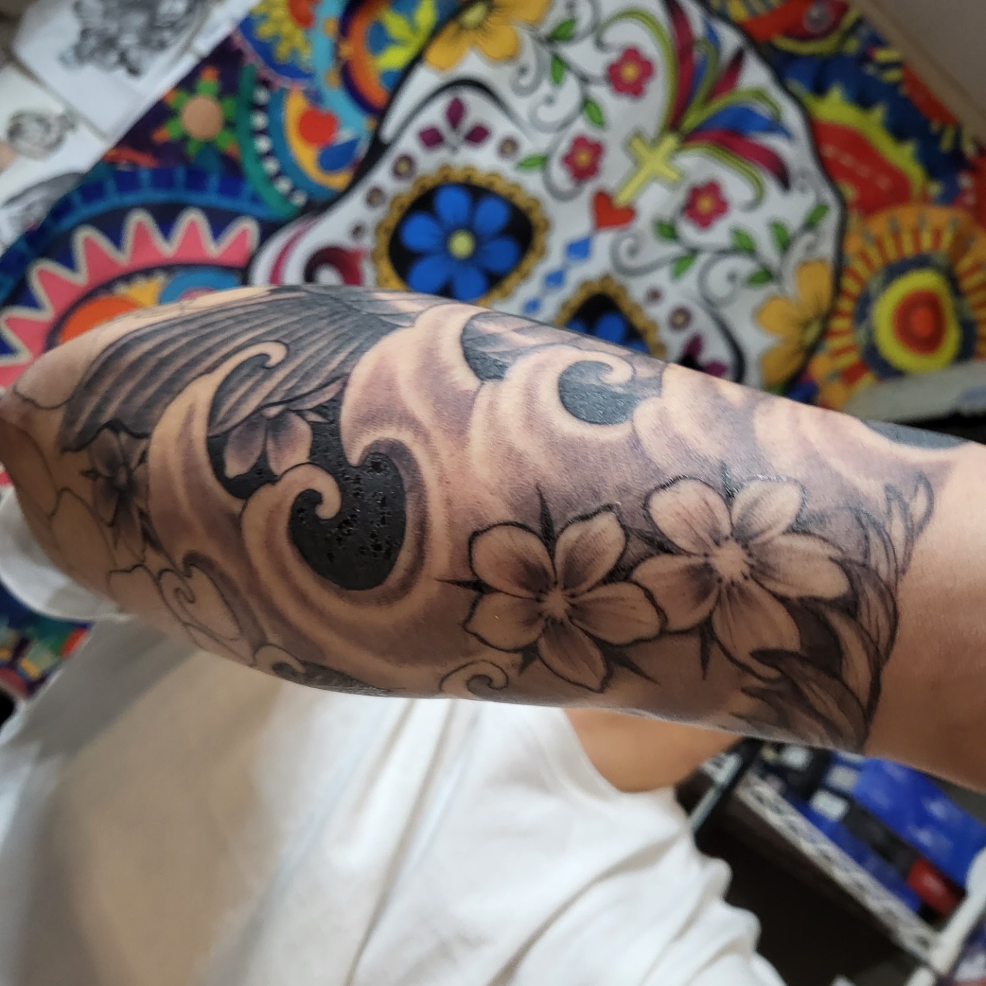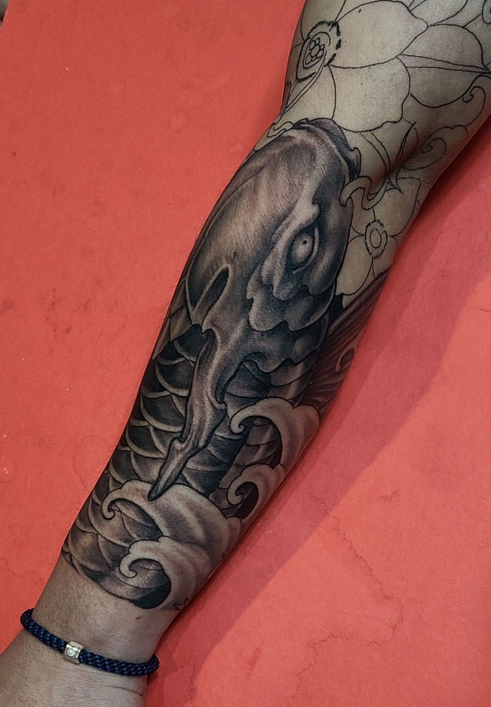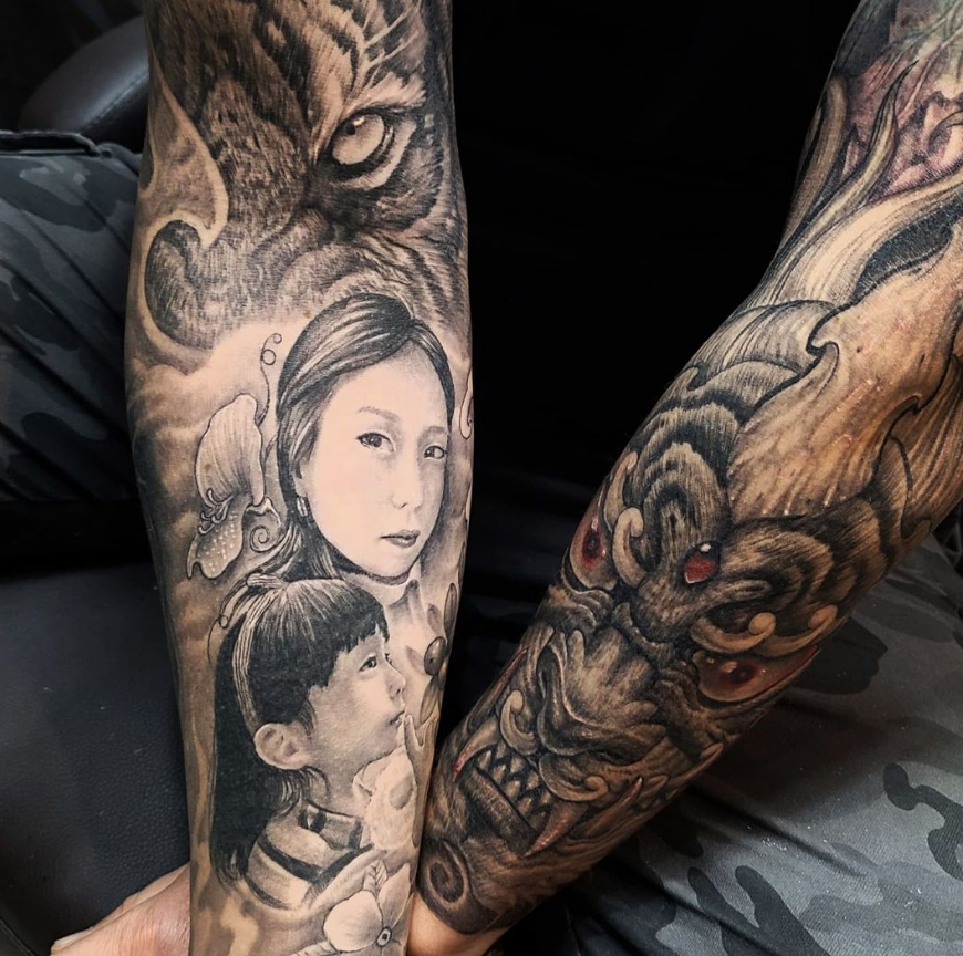 기존 반팔에서 긴팔로 연장할때 굉장히 자연스럽게 연결이 되었기에 정말 가까이에서 자세히 보지 않는다면 애초에 긴팔로 타투시술을 받은걸로 착각할 퀄리티입니다.