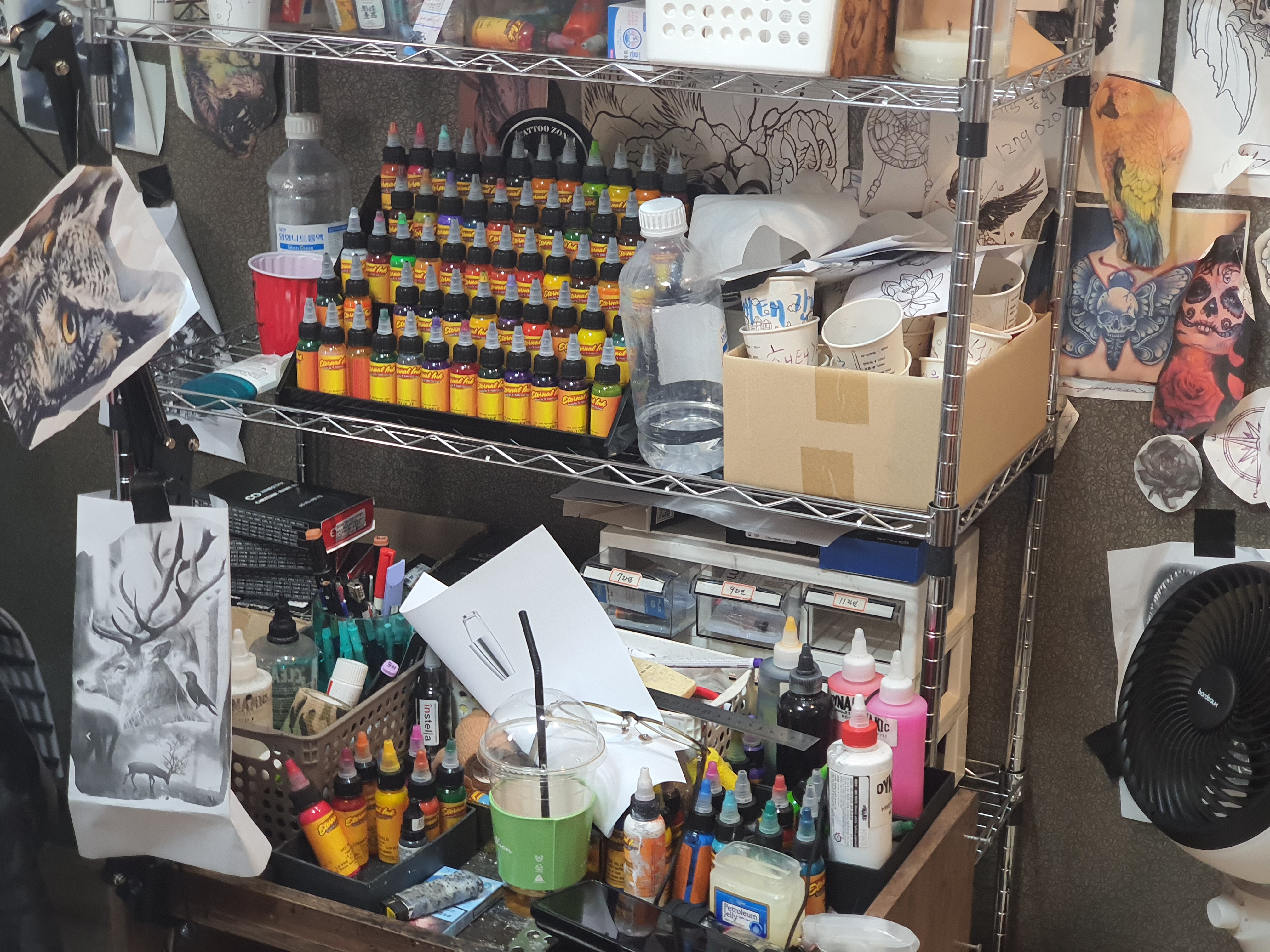 타투에 쓰이는 잉크들인데 색상이 엄청 많고 이뻐보여서 한번 찍어봤네요.