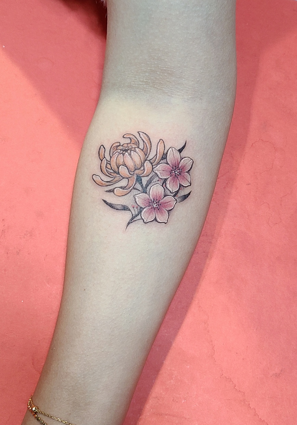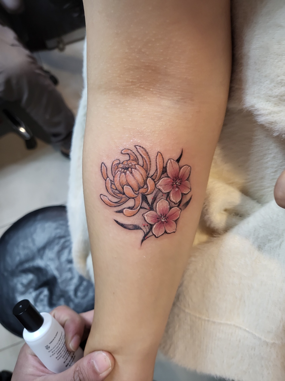 친구 여자친구도 같이 따라갔는데 타투 시술받는거 보고 자기도 하고싶다고 해서 꽃모양으로 시술을 받았습니다.