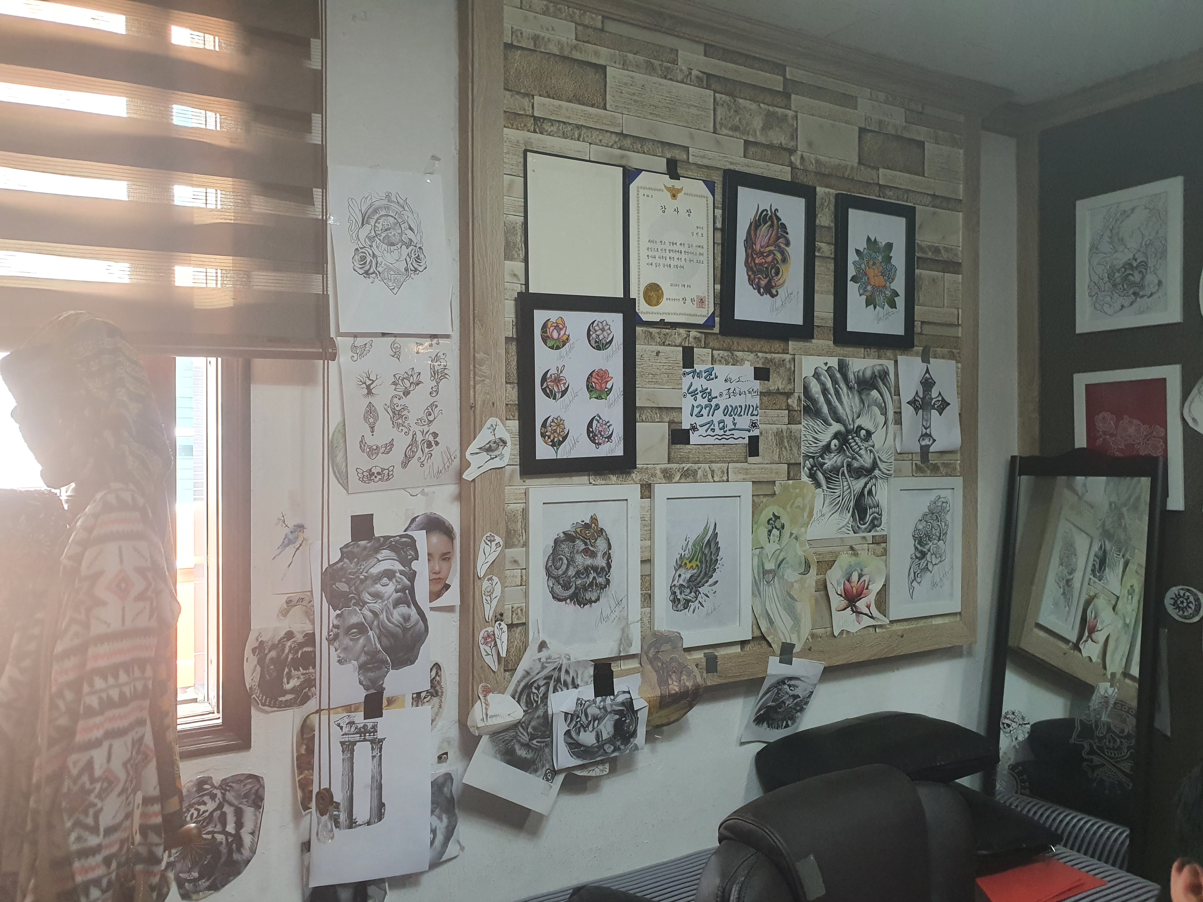 타투샵 내부를 둘러보니 여러가지 장식품들이 많이 있네요. 개성 넘치는 환경이었습니다.