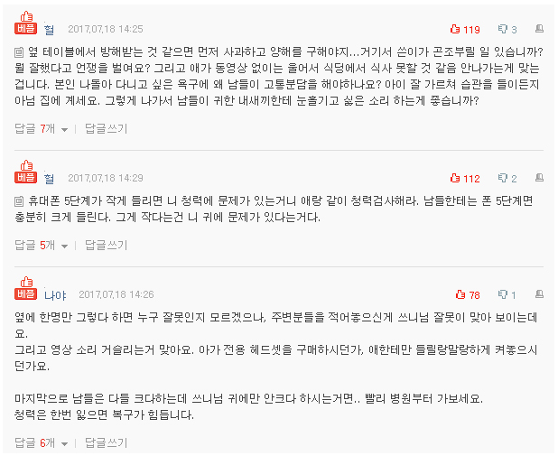 왜 그걸 크게 틀어놓냐고 이어폰 없냐고