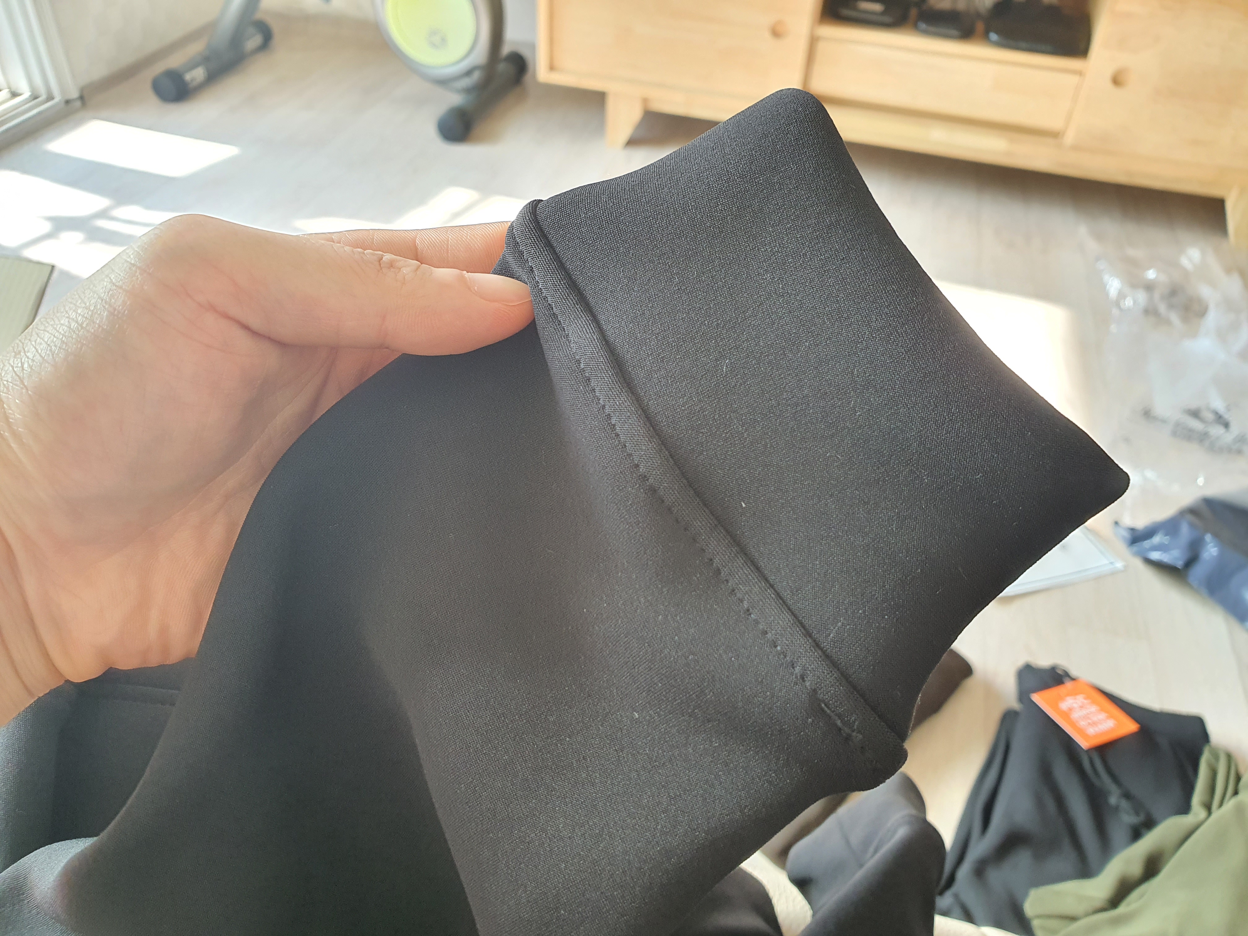 대신 단점을 말씀드리자면 온장고 바지 즉 하의는 괜찮은데 상의=맨투맨은 추천드리지 않습니다. 이유를 말씀드리면 옷이 따뜻하지 않고 이런게 아니라 입었을때 기장이라든지 어깨부분은 괜찮은데 목라인 부분이 너무 파여있습니다.