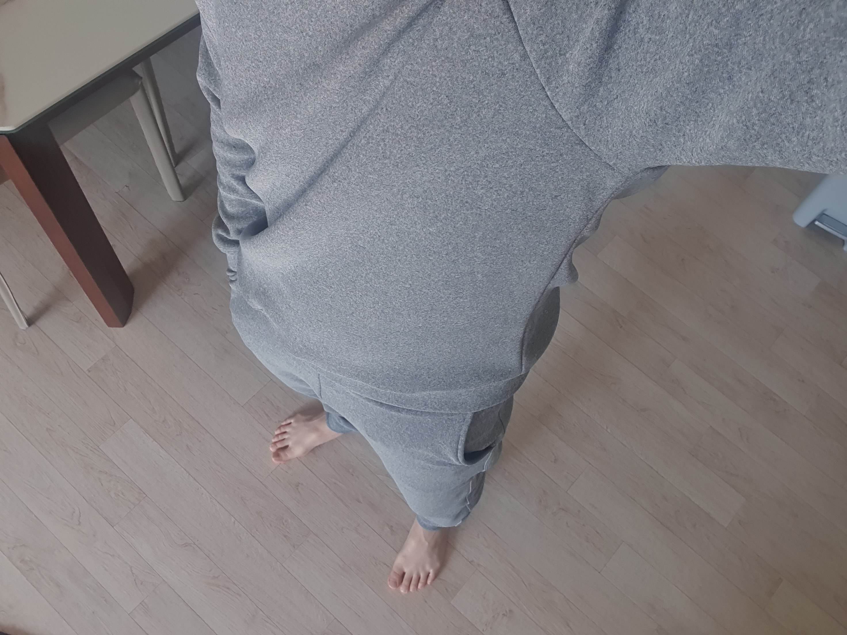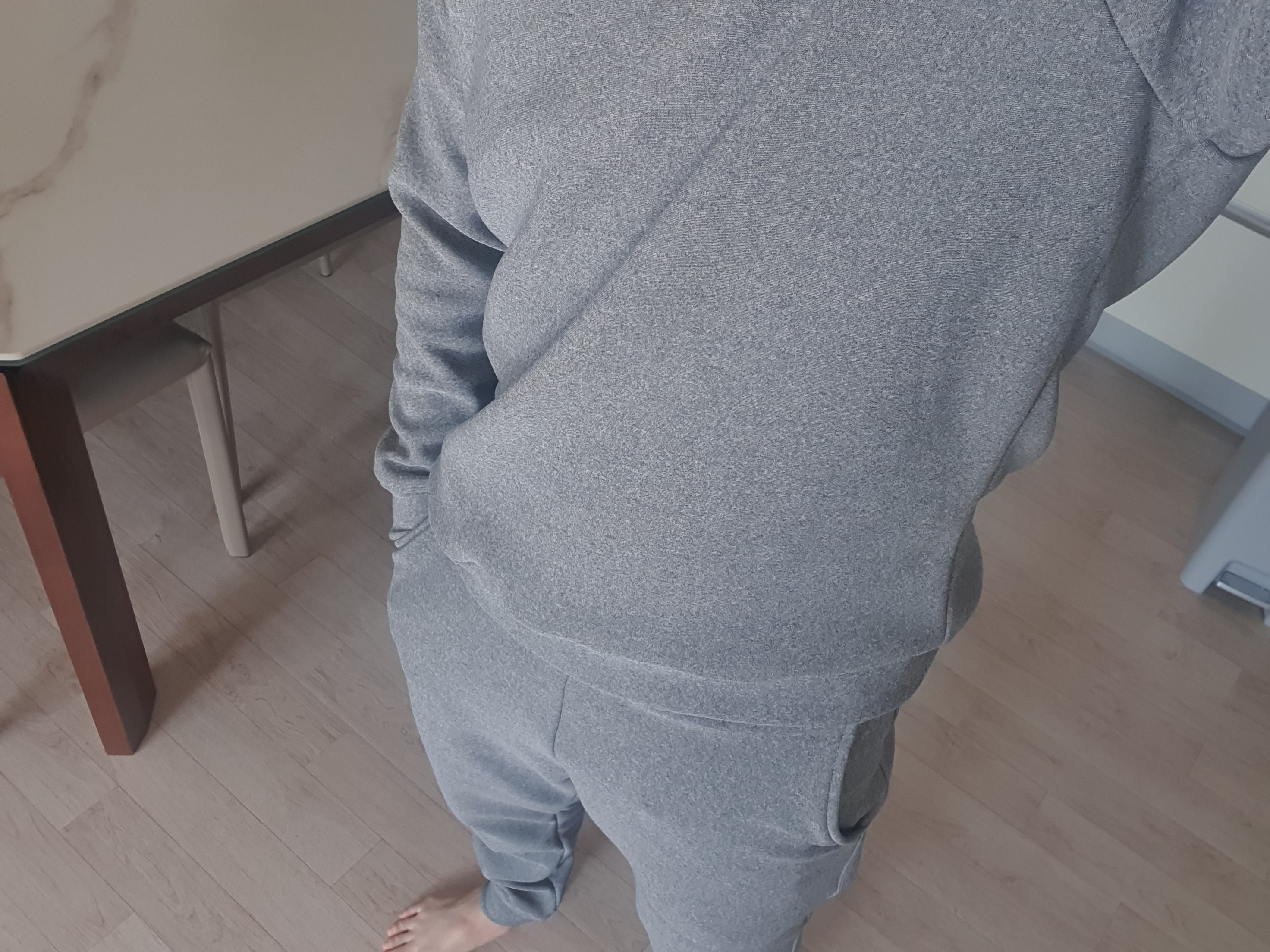 아무래도 회색 색상이 트레이닝복으로 무난하기에 괜찮은 옷핏을 보여줍니다.