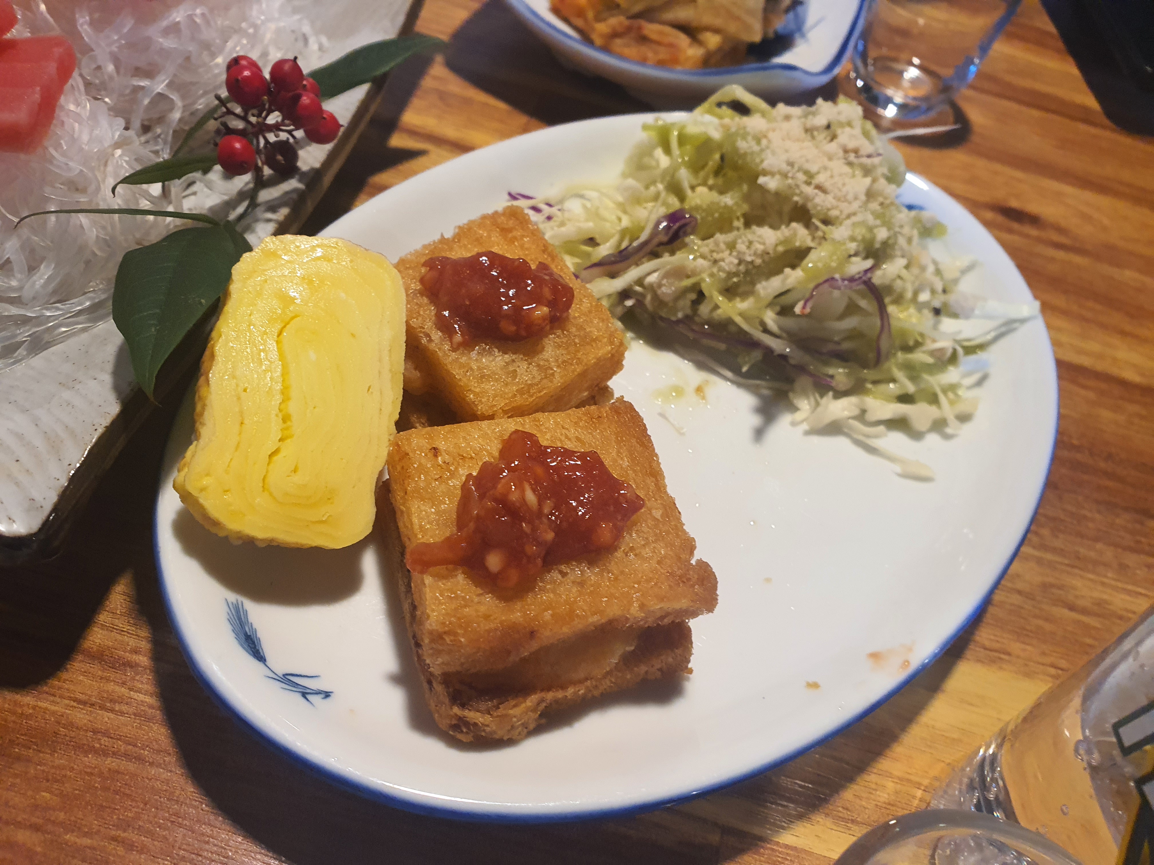 3가지가 나오는데요. 저는 타코야끼를 참 좋아하는데 오랜만에 참치집에 와서 먹게되니 왠지 더 맛있게 느껴졌습니다. 실제로 맛있더라구요. 물론 나머지 튀김들도 맛있구요!