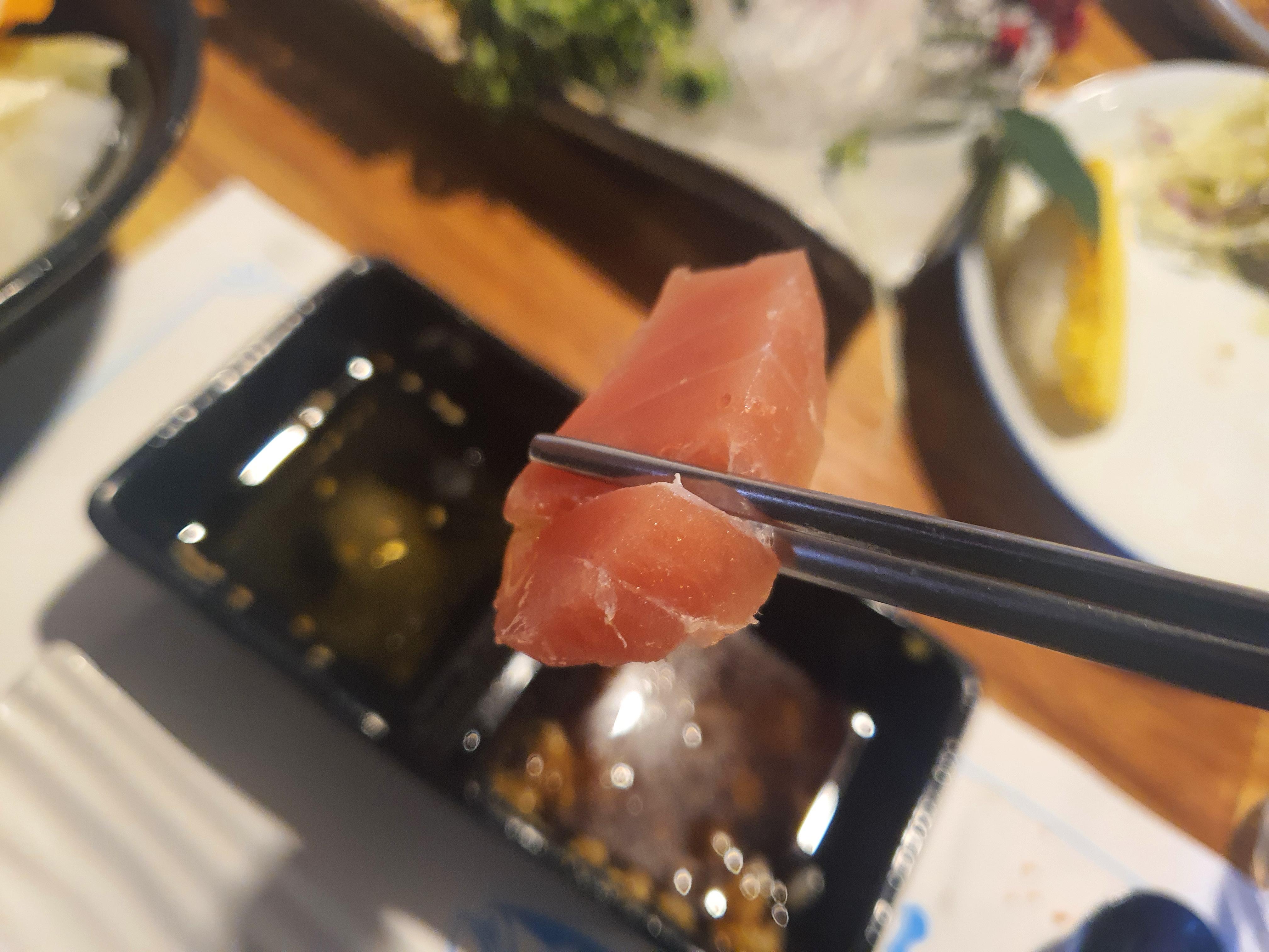 가까이서 찍었는데 참치의 윤기가 살아있습니다.