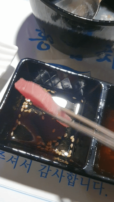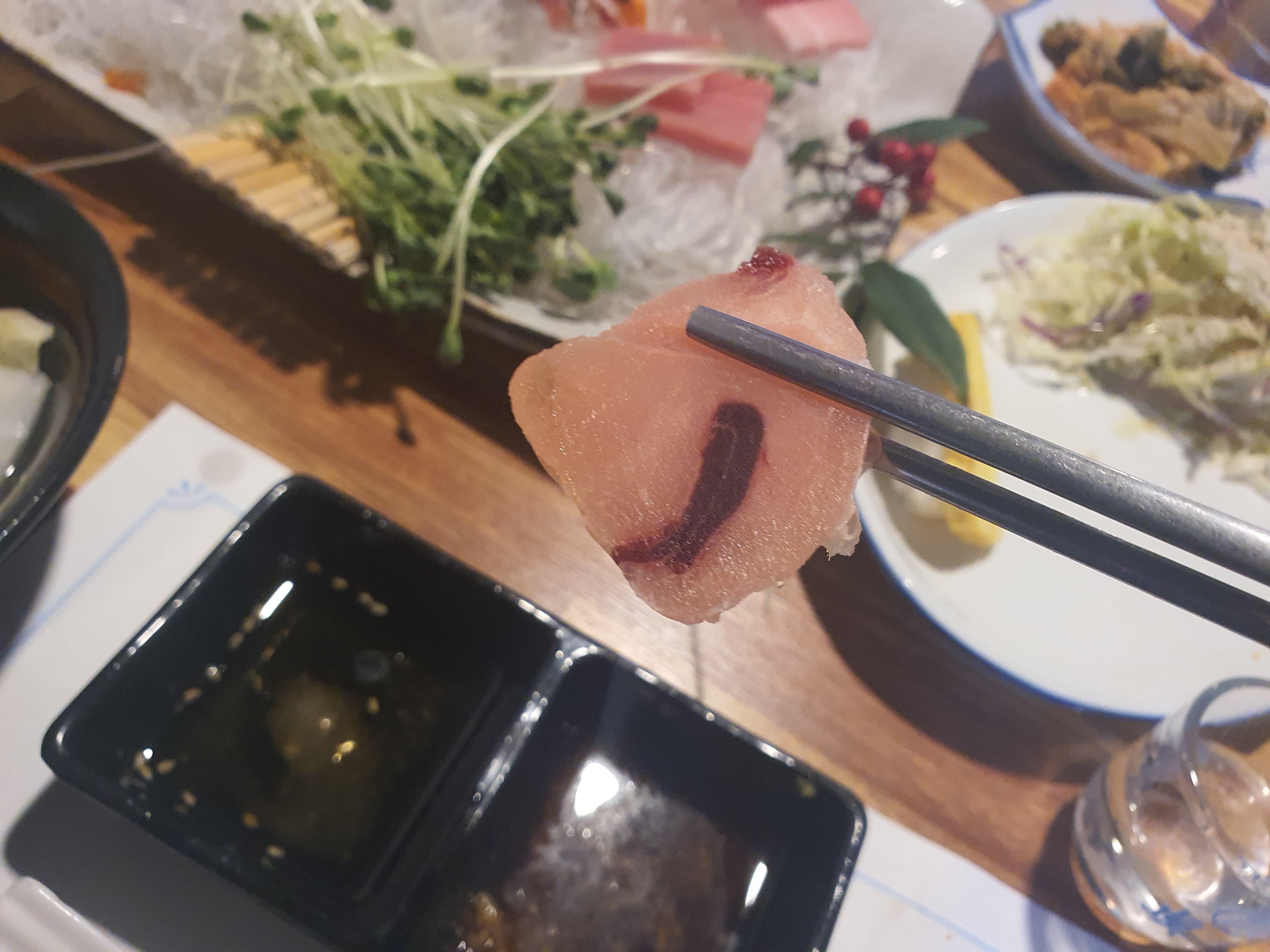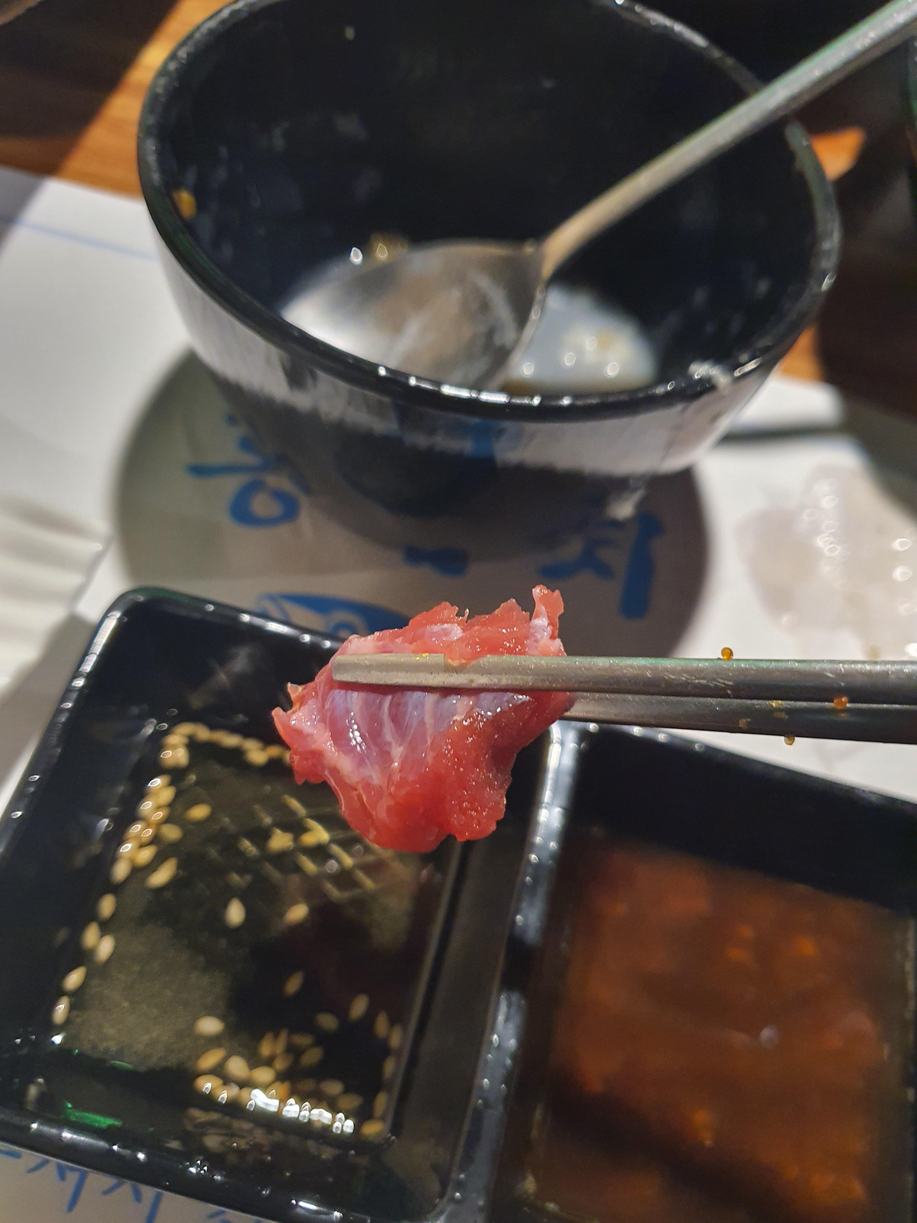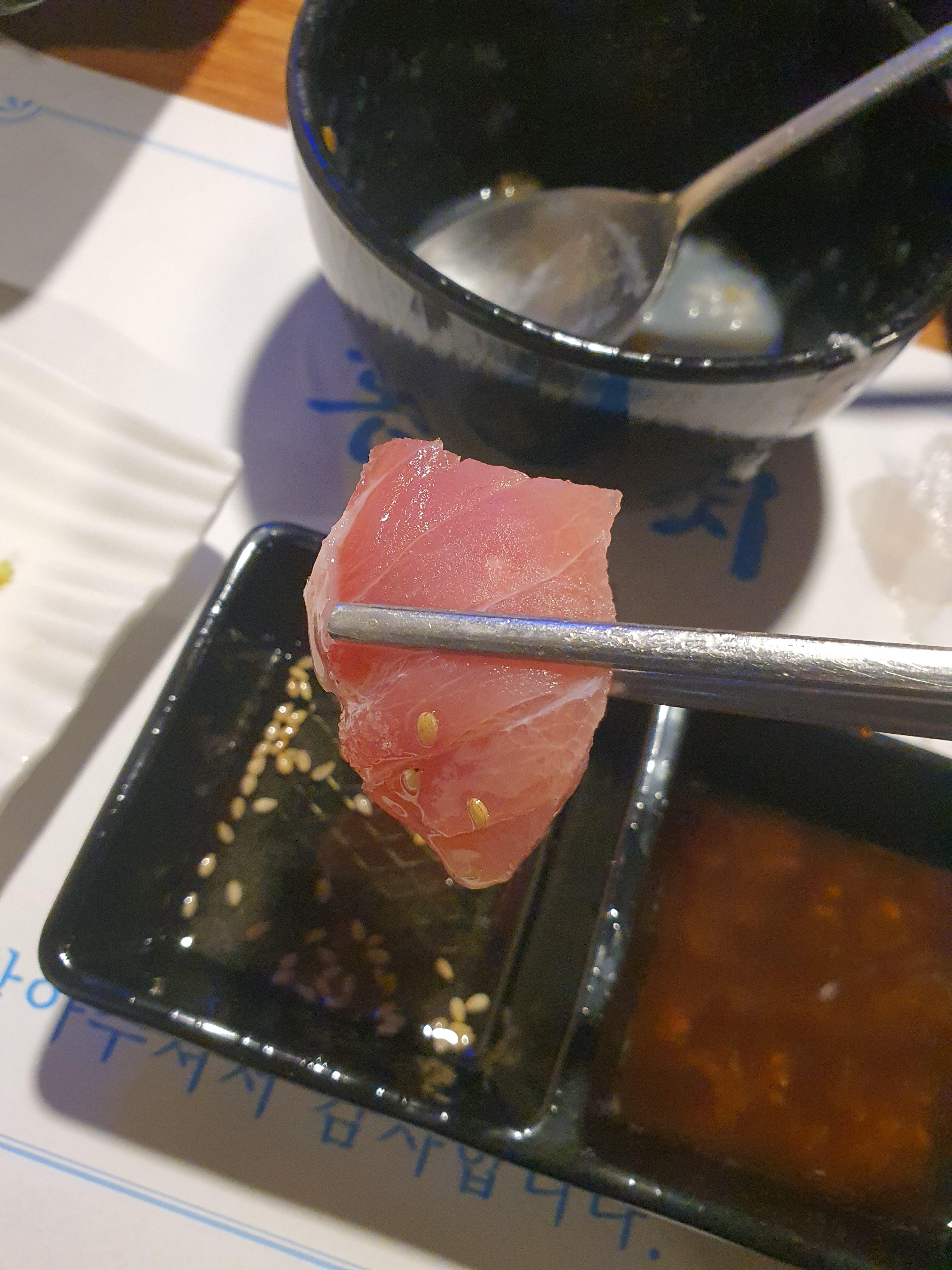 전 사실 처음봤거든요. 참치집에 와서 이런 진귀한 광경도 보고 무척 신선했습니다.