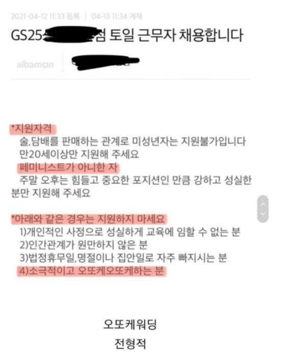 GS25 한 업주가 본인이 뽑는 아르바이트생 공고에 올렸다가