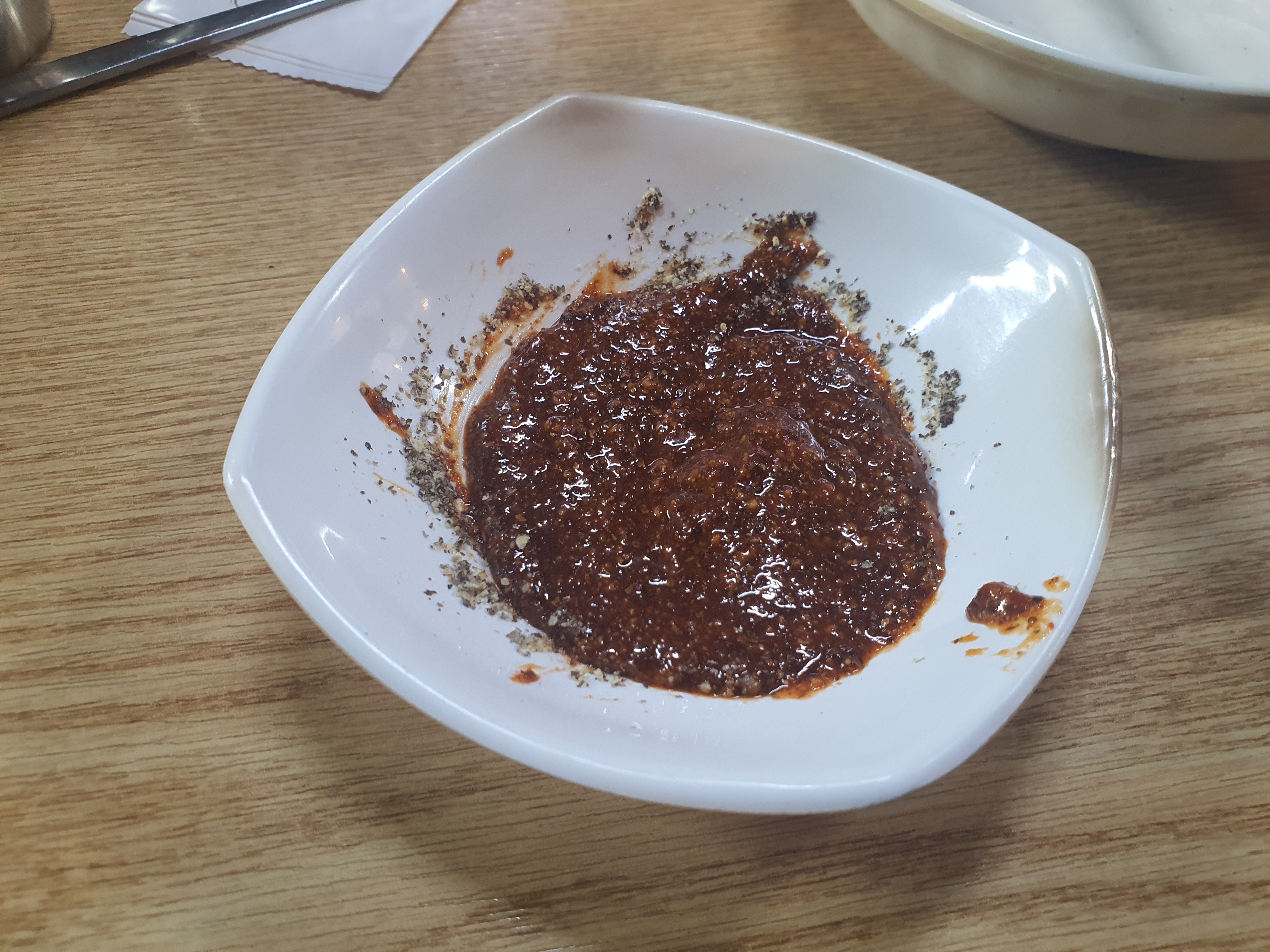 남아있는 건더기를 마저 다 먹은 뒤 소량의 국물을 남겨놓았습니다.