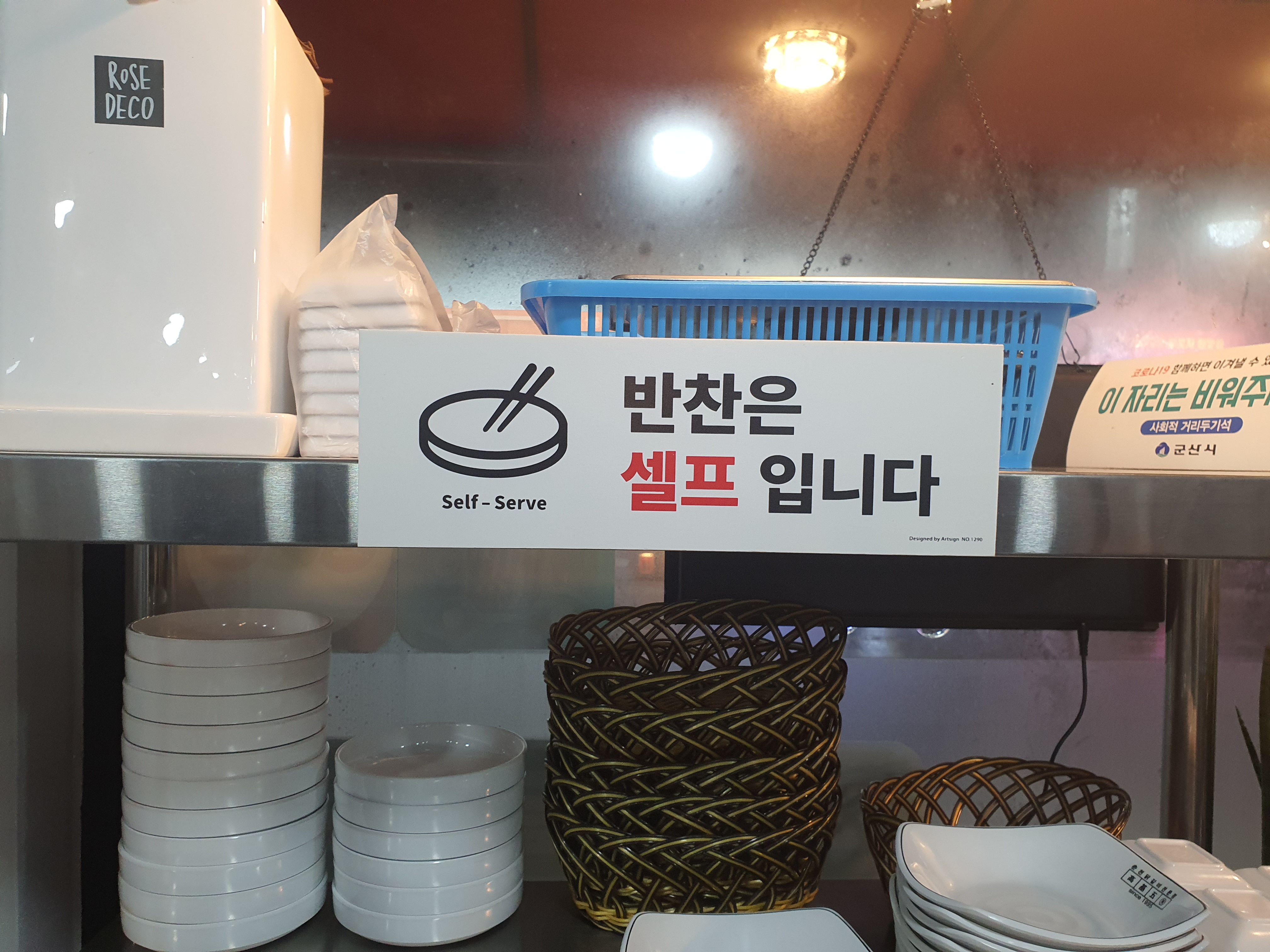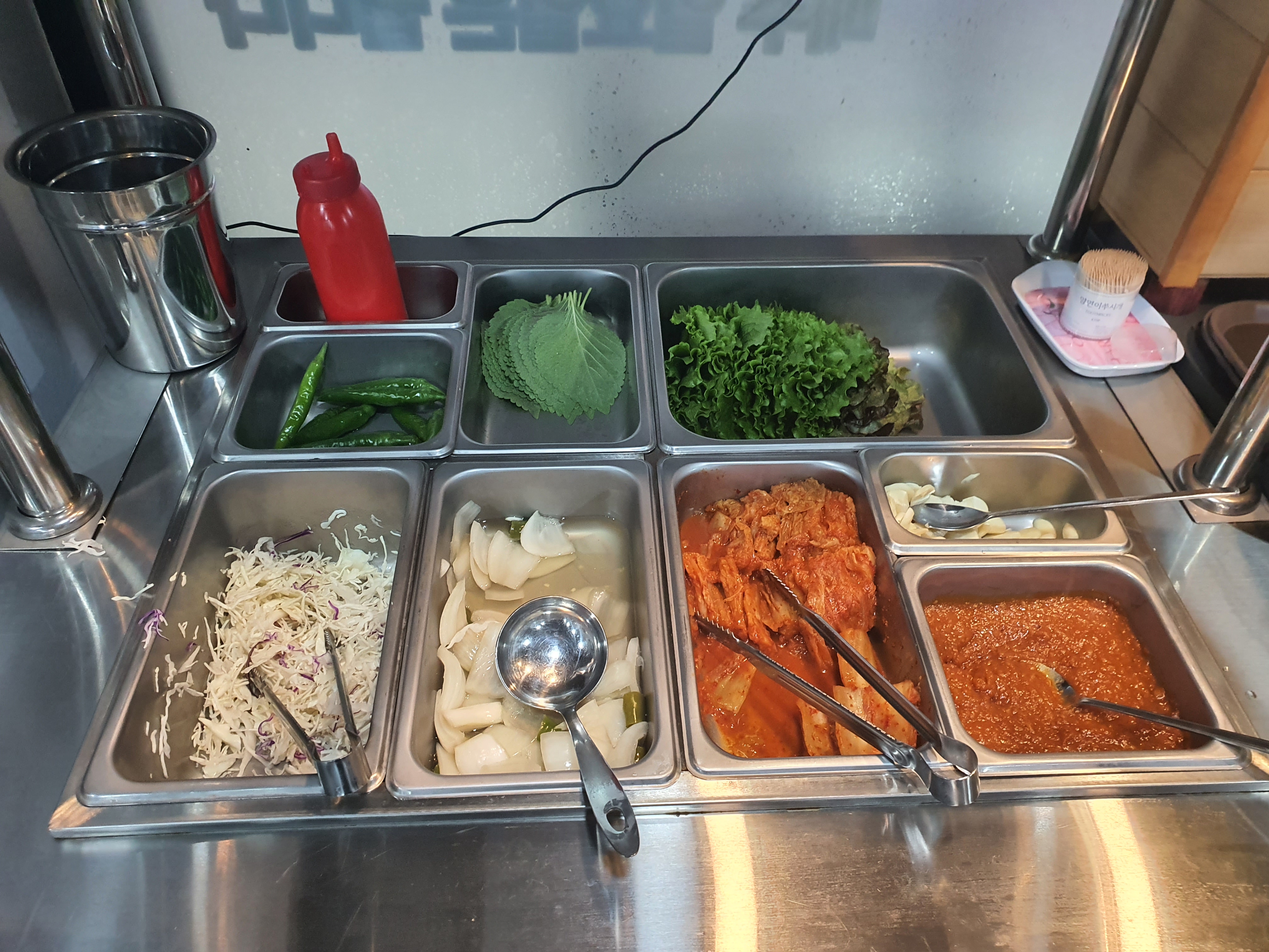 기본으로 나오는 반찬들이 부족하다 싶으면 직접 채워먹으시면 됩니다. 저는 반찬이 많지 않으면 이렇게 직접 셀프로 가져가는게 편하드라구요.