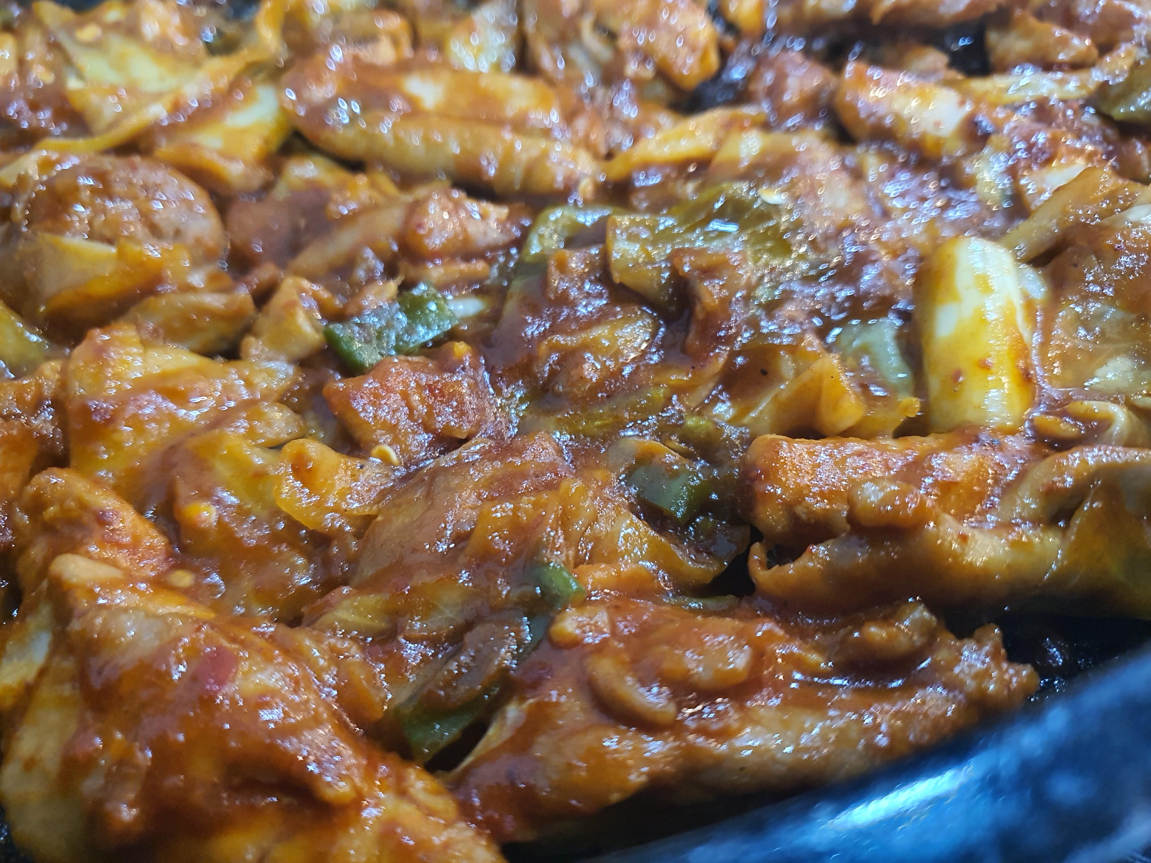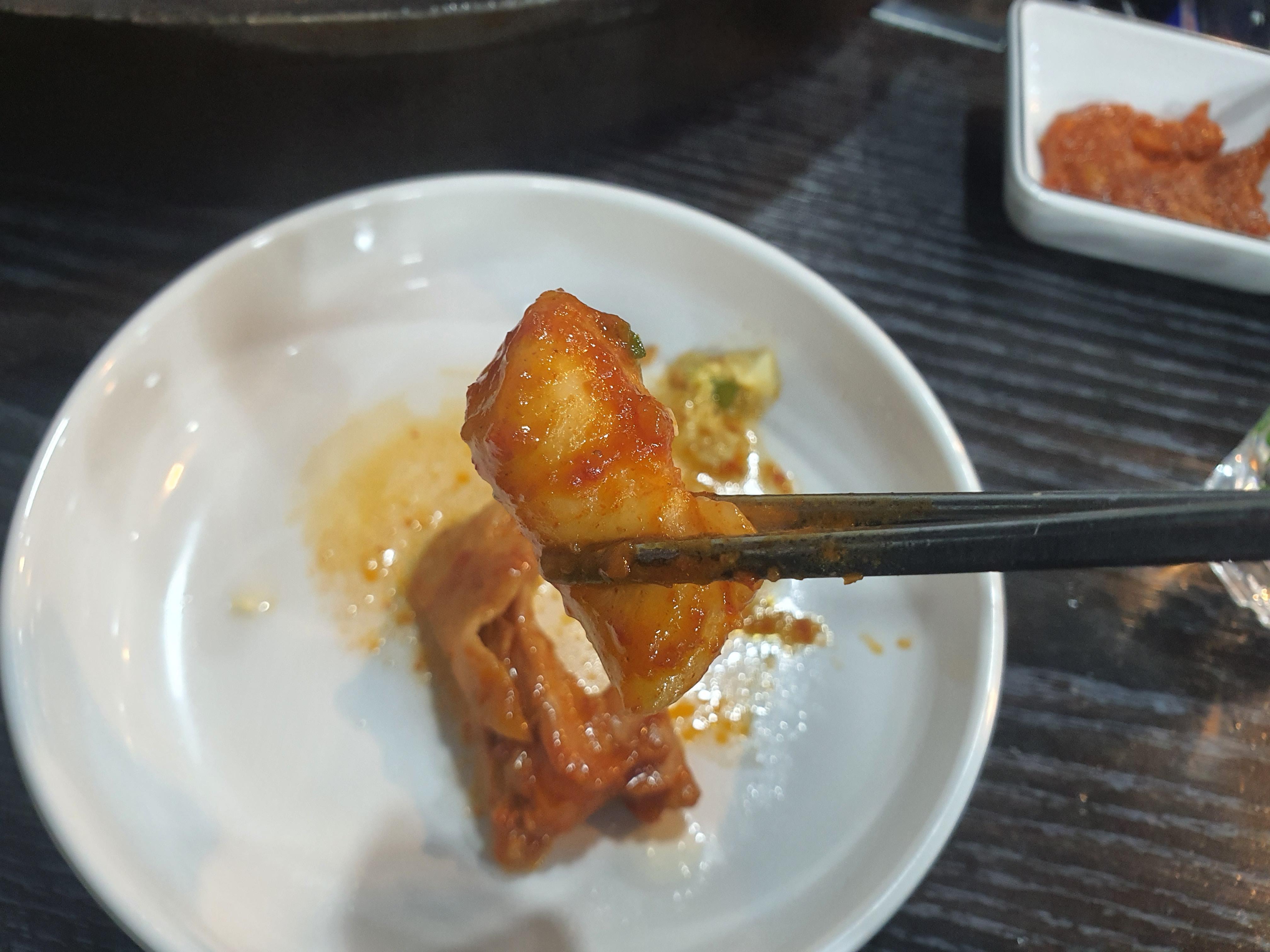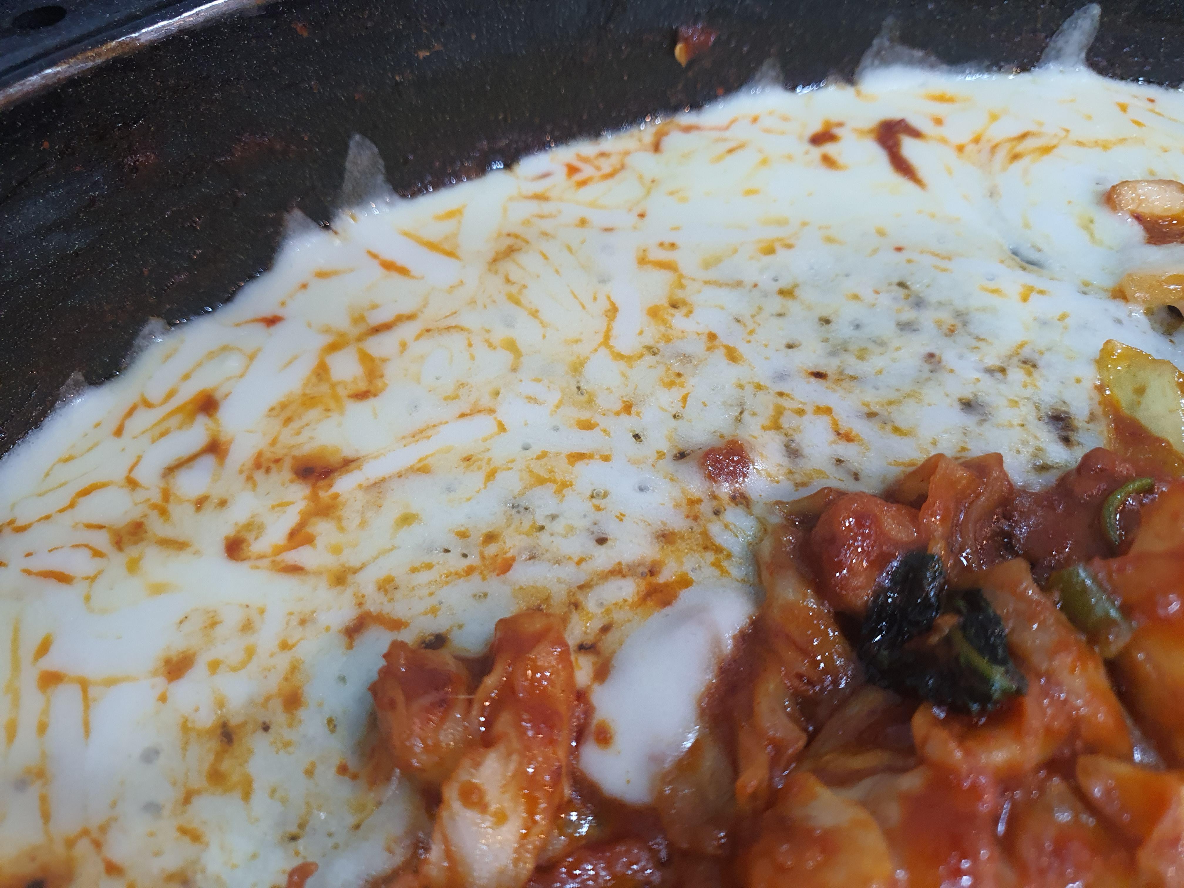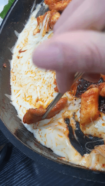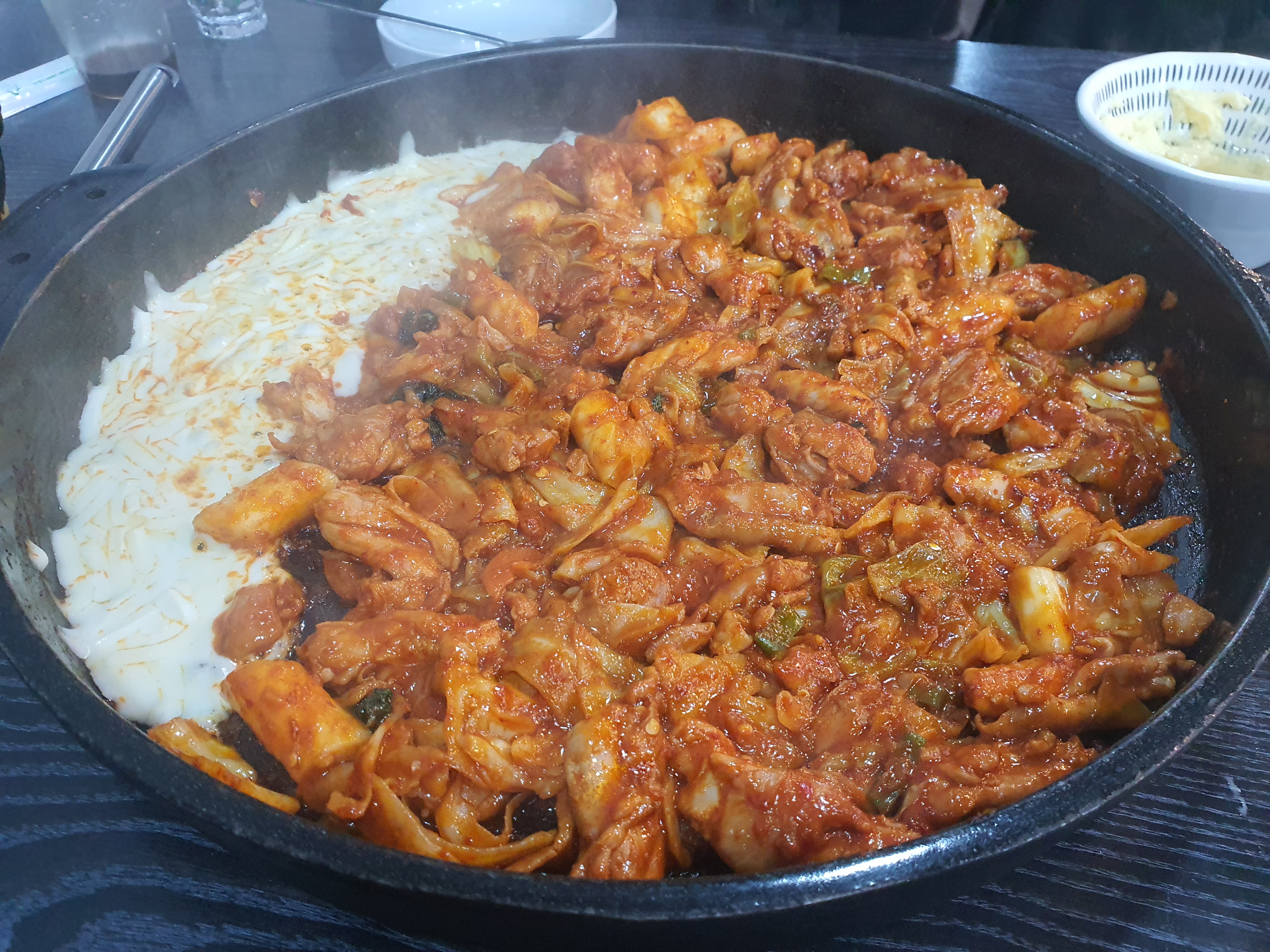 뭔가 닭갈비 소스를 치즈가 약간 중화시키면서 맛있게 섞여 느끼함과 매콤함이 공존하는 느낌이랄까?