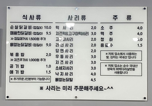 이때까지 가봤던 닭갈비 가게중에 제일 괜찮았습니다. 앞으로도 자주 갈듯합니다.