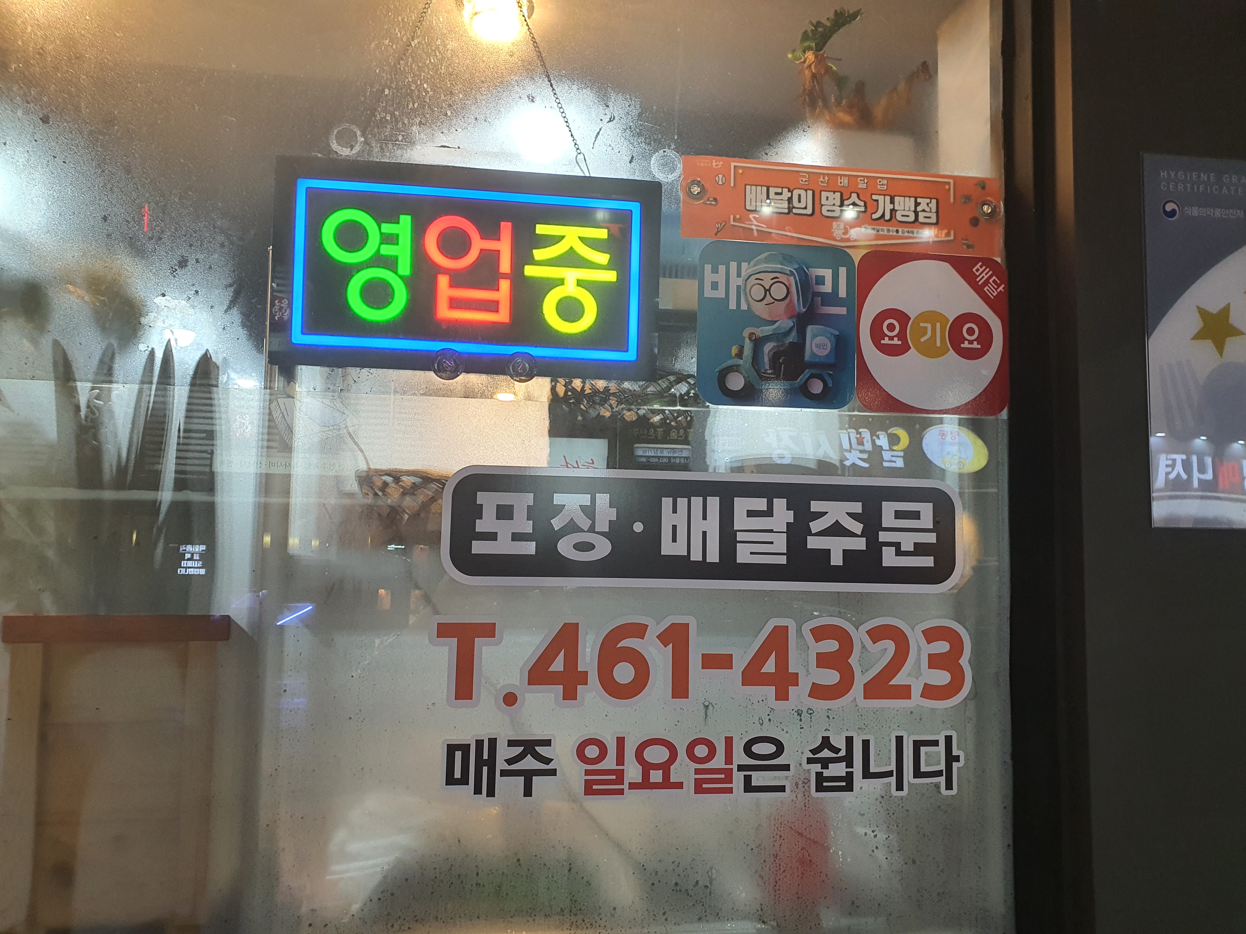 포장 및 배달주문이 가능하고 배달의 민족 / 요기요 / 배달의 명수 3가지 플랫폼에서 주문이 가능합니다. 매주 일요일은 쉰다고 하네요.