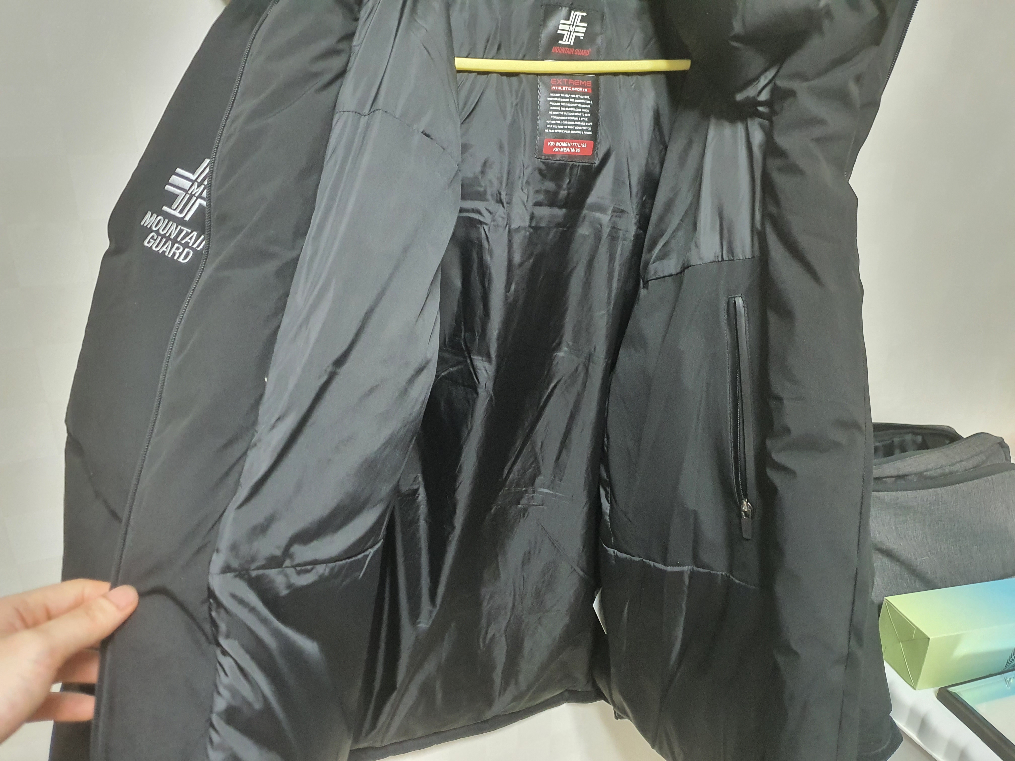 가슴 포켓이 장착되어있으며 마운틴가드 패딩 지퍼 라인은 전부 방수지퍼 처리를 하여 겨울철 개인 소지품을 손쉽게 수납할수 있도록 제작된듯 합니다.