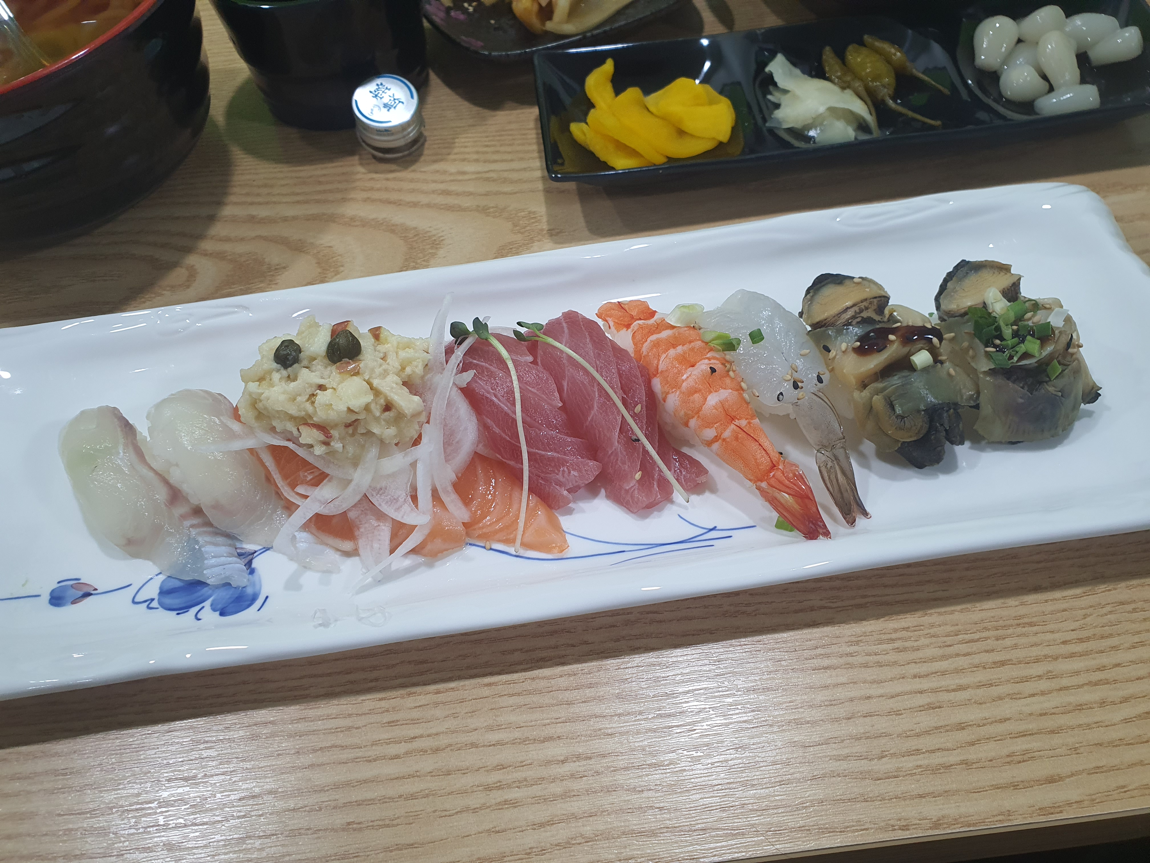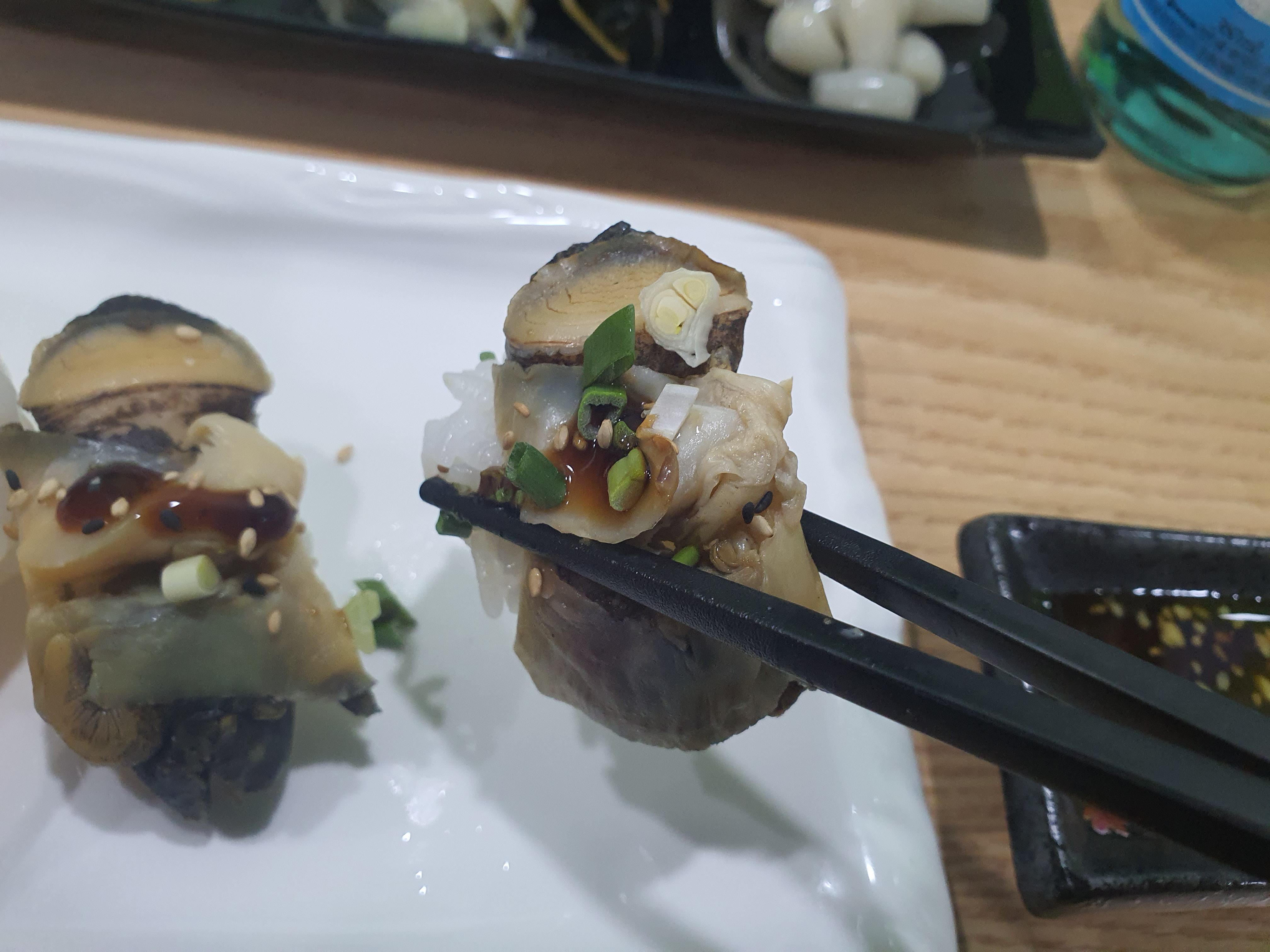 다른 가게들은 모듬초밥하면 재료비 아낄려고 계란초밥 이런거 끼워넣어서 극혐이었는데 여기는 특이하게 소라초밥을 주는데 굉장히 독특했으며 씹는맛이 아주 일품이었습니다.