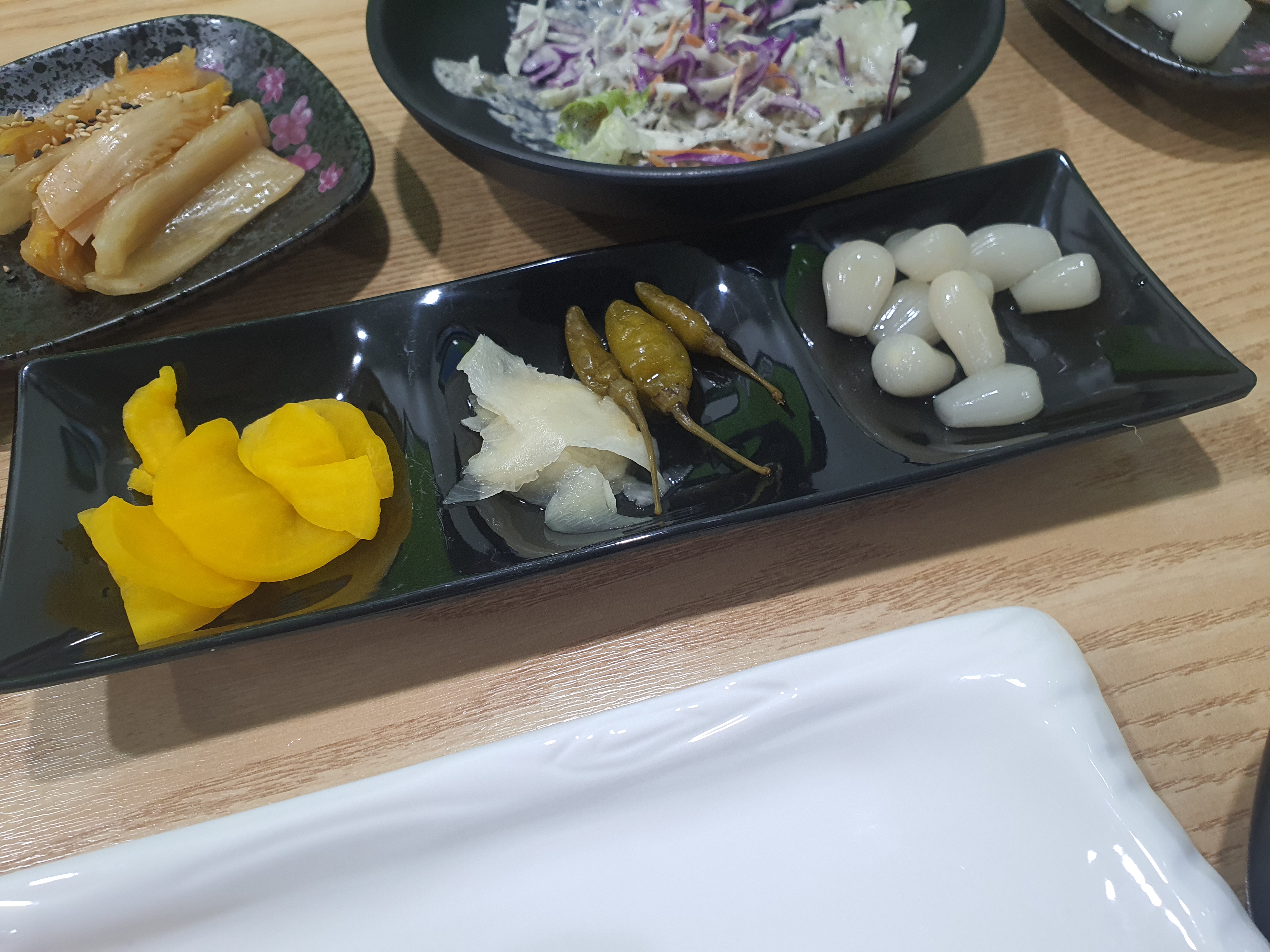 단무지, 락교 여러가지 반찬이 나오고