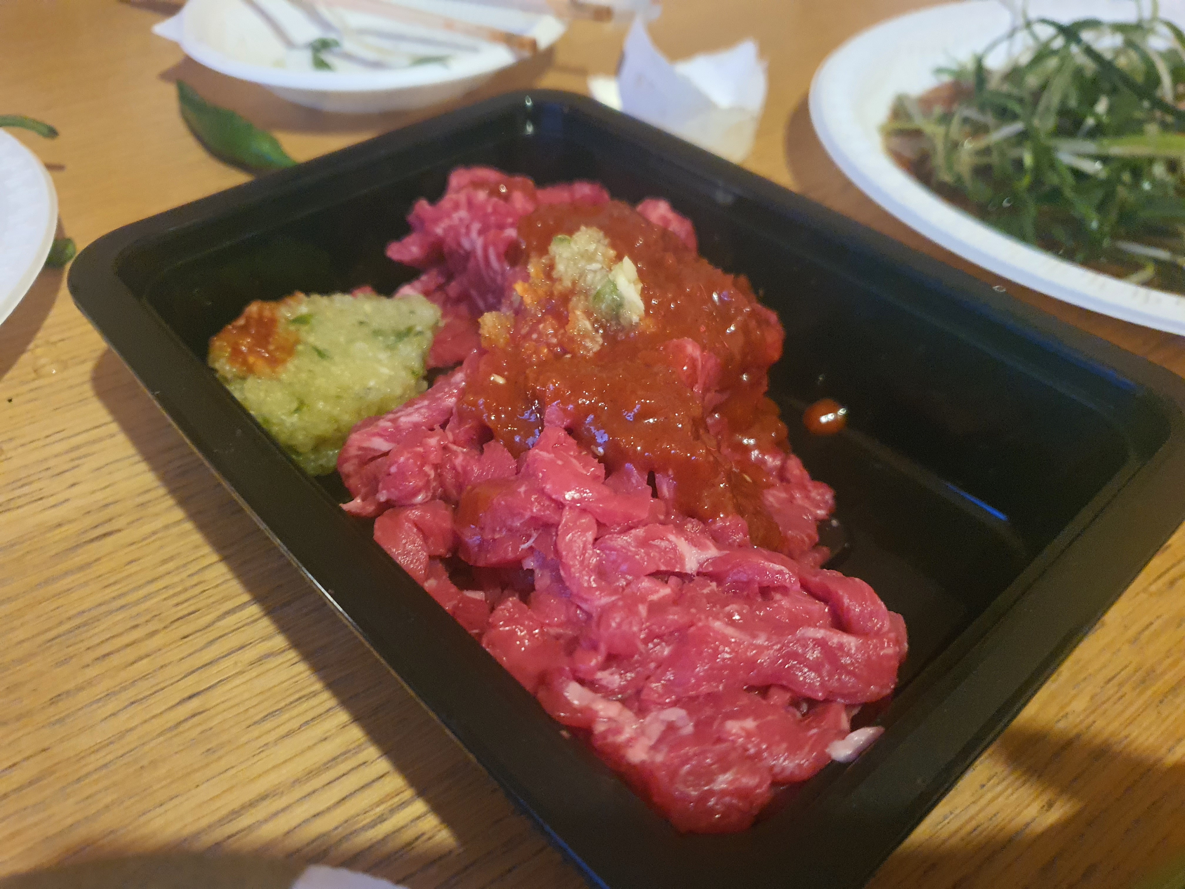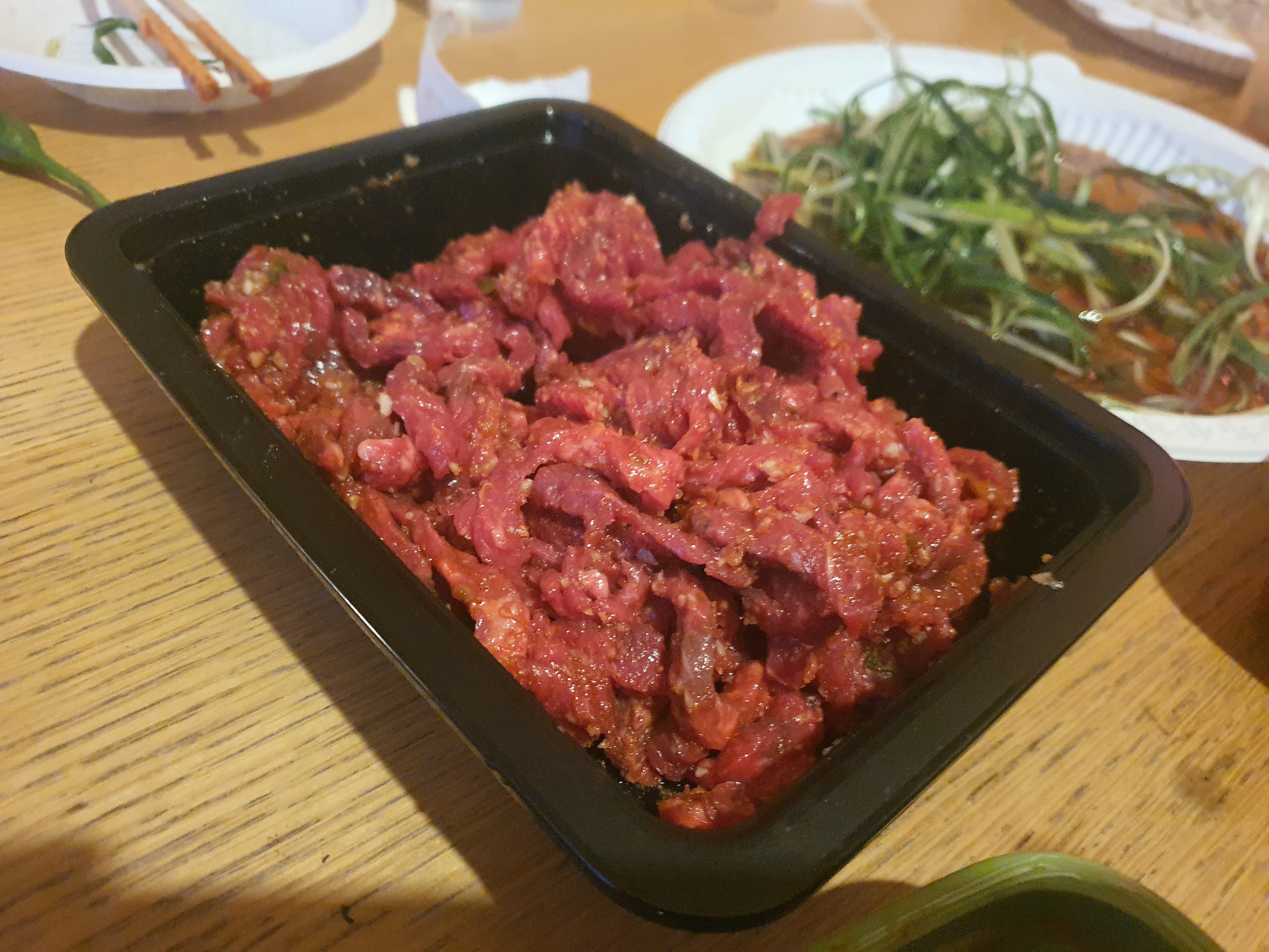 고기 뿐만 아니라 육회도 준비를 해서 소주와 함께 맛나게 섭취했습니다.
