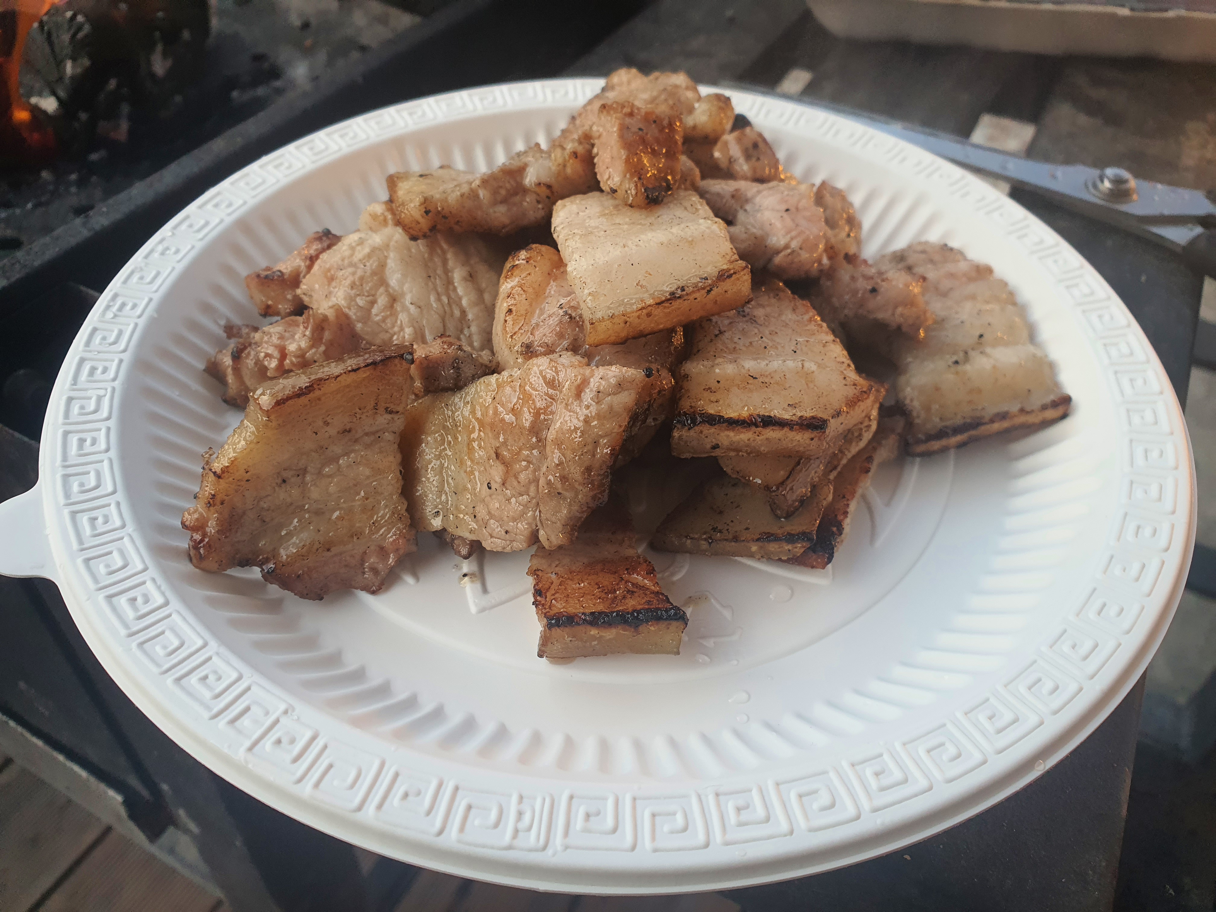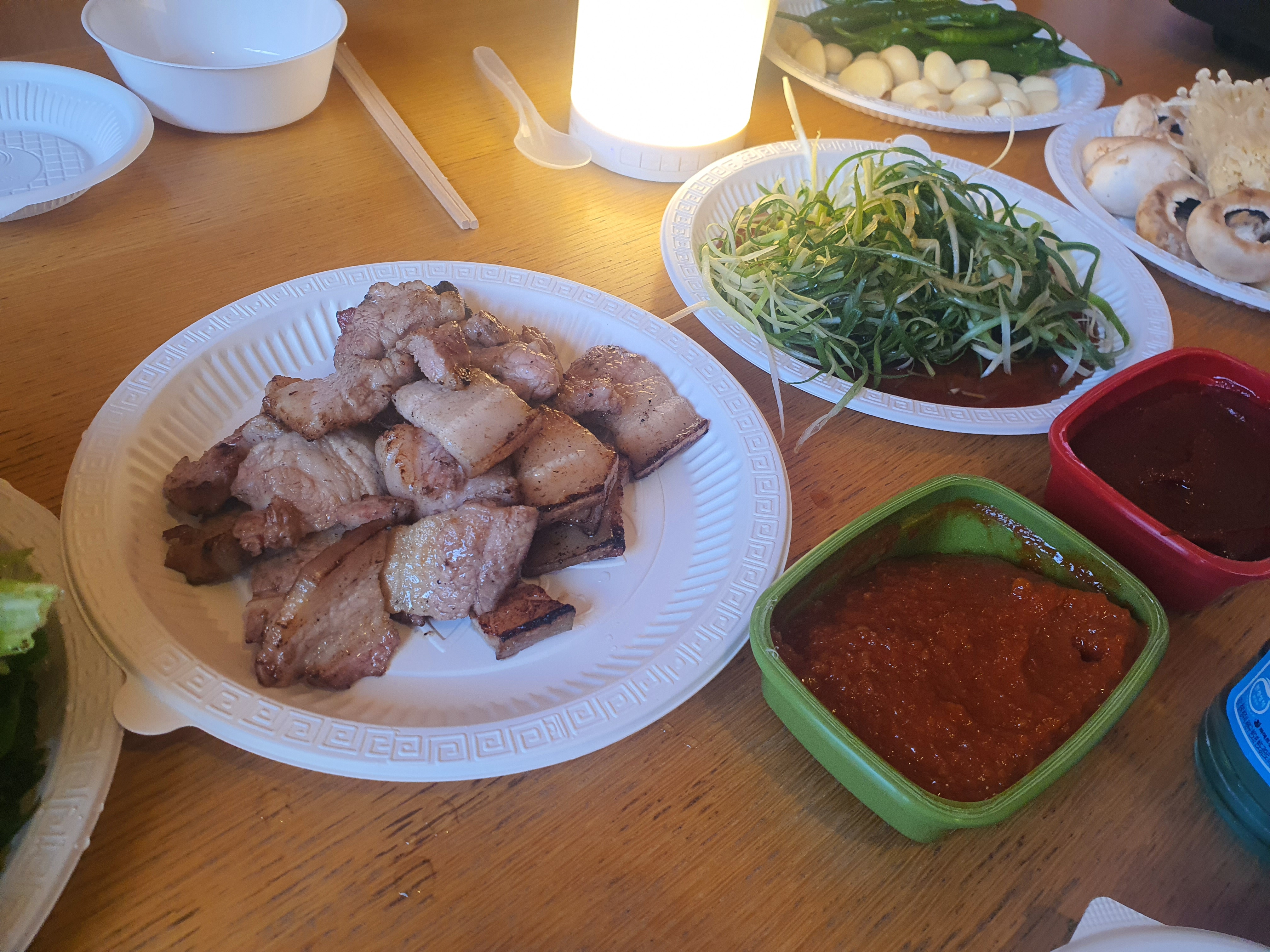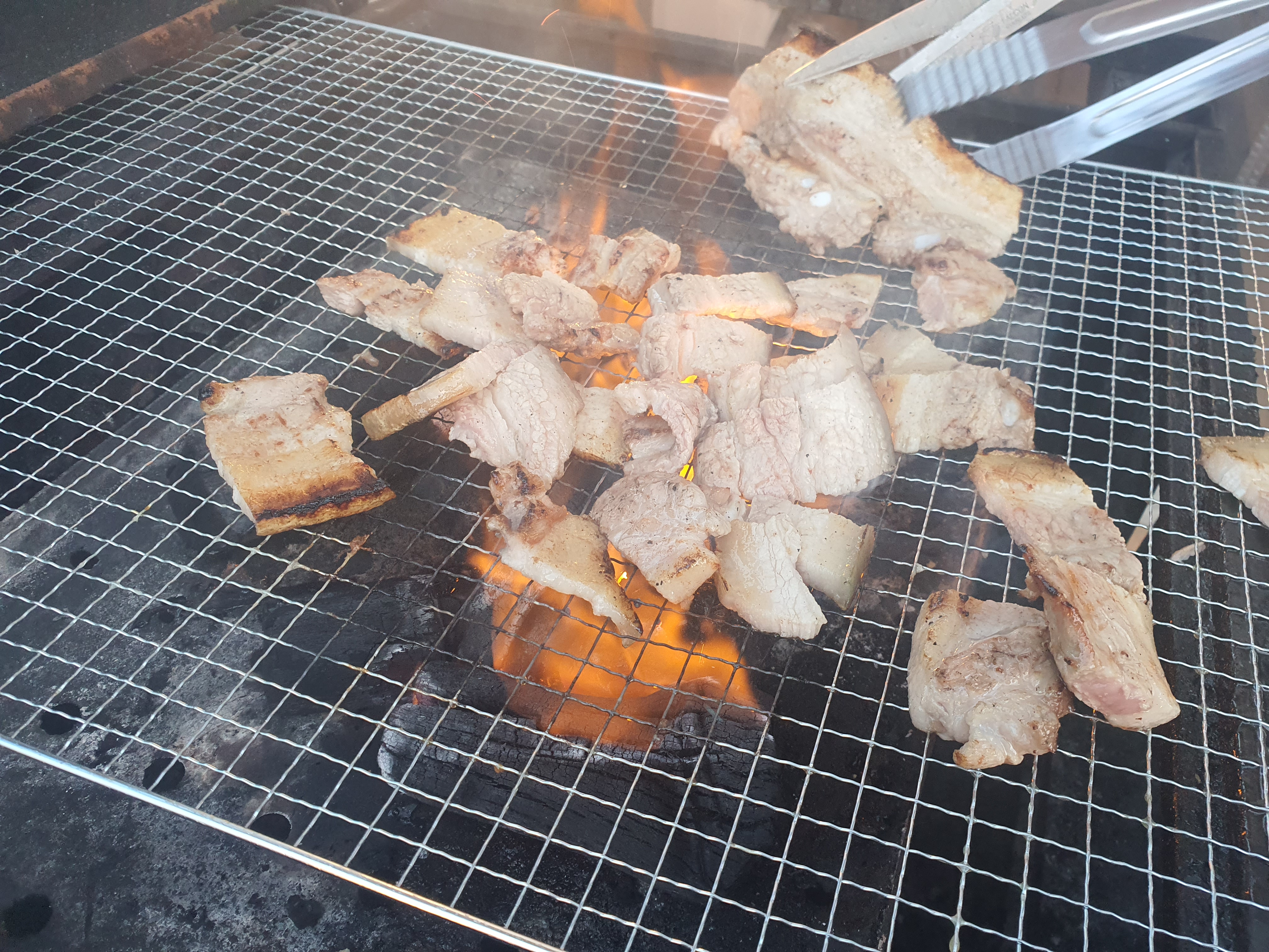 어두워짐에도 불구하고 사온 고기를 다 먹어야하기에 열심히 토치로 지져주고 맛나게 먹었습니다.
