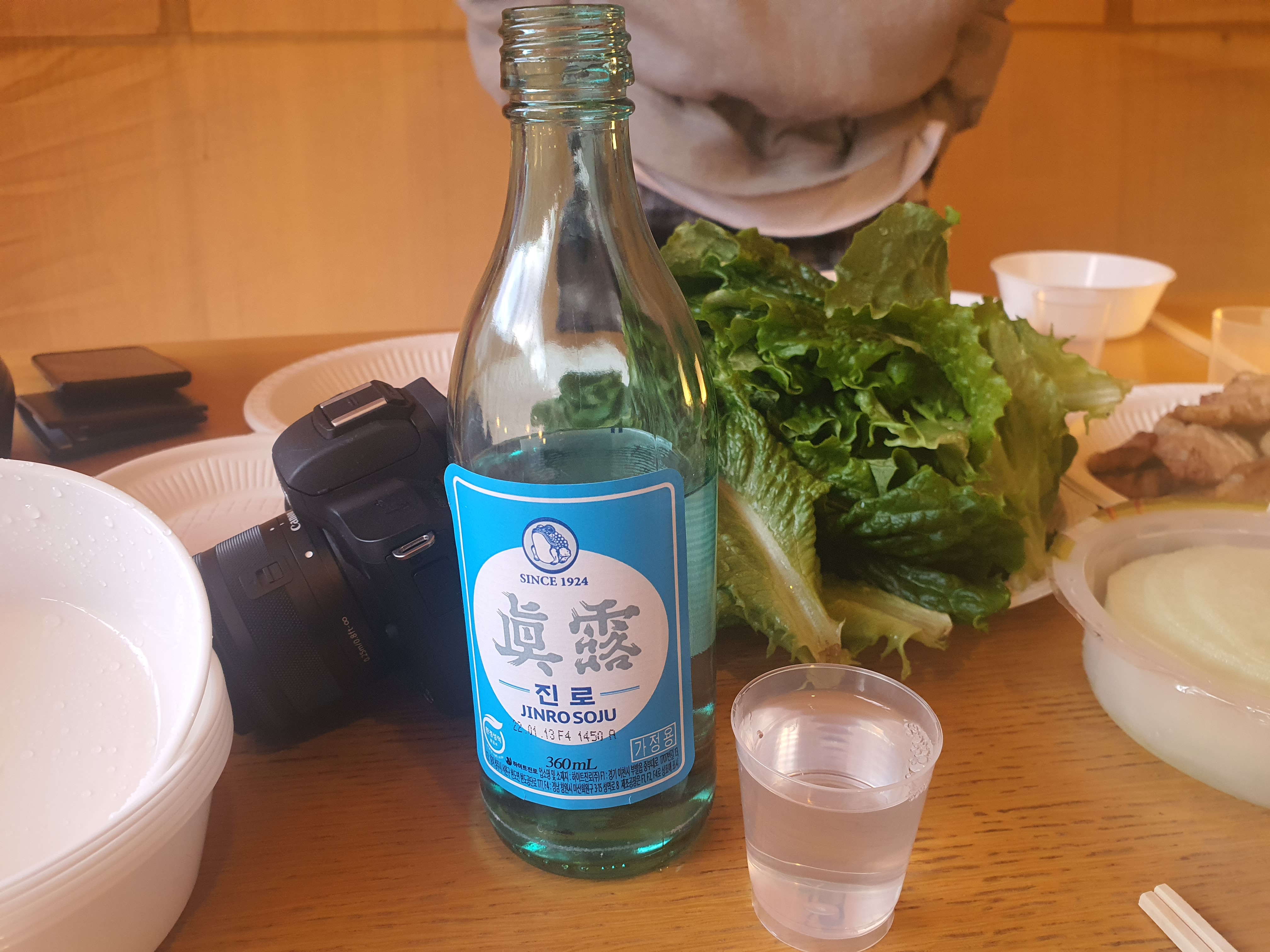 고달픈 현실을 잠시 잊고자 왔기에 소주로 첫 식사를 시작합니다.