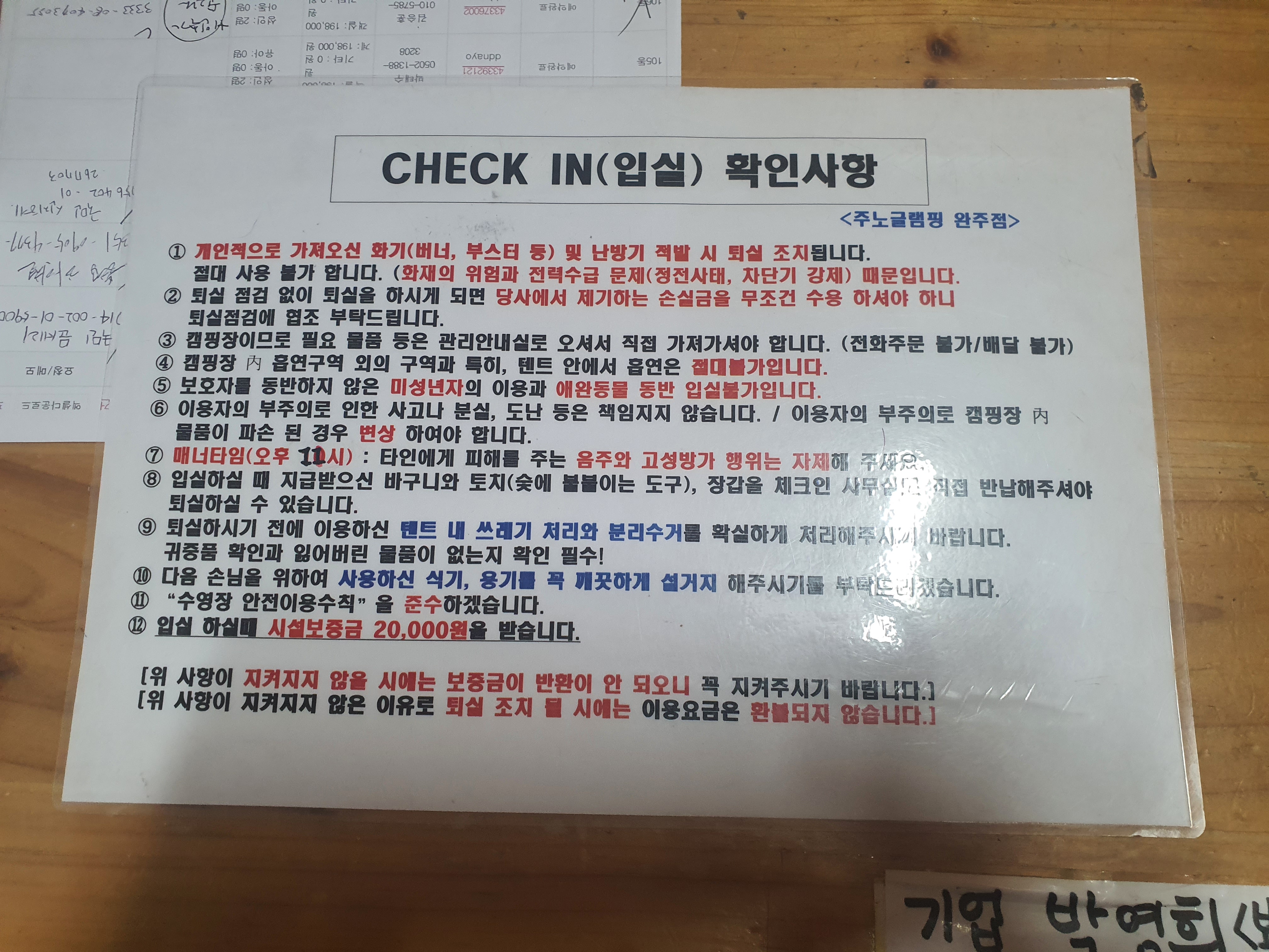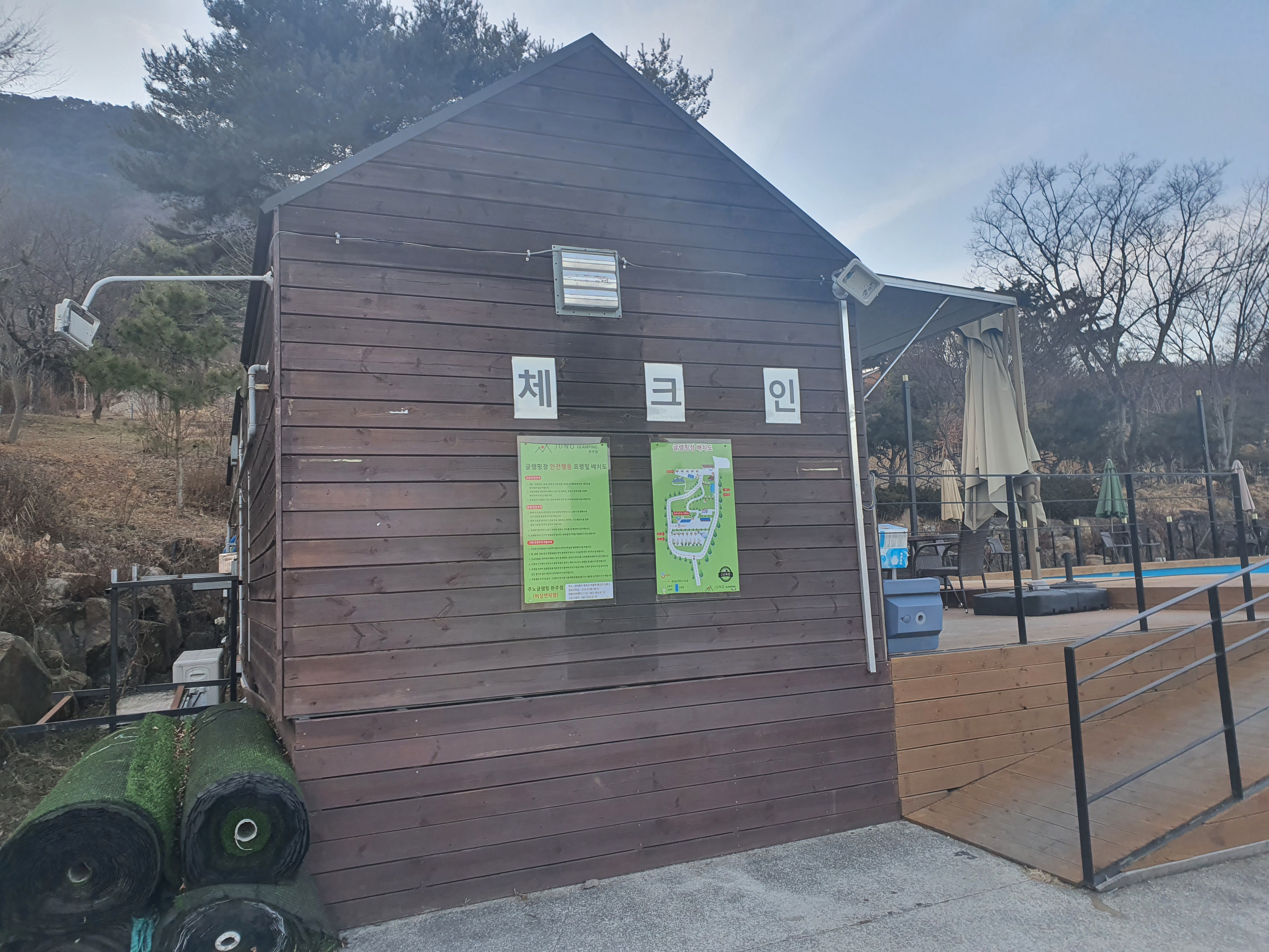 주노 글램핑장에 도착하면 먼저 체크인을 해야 합니다.