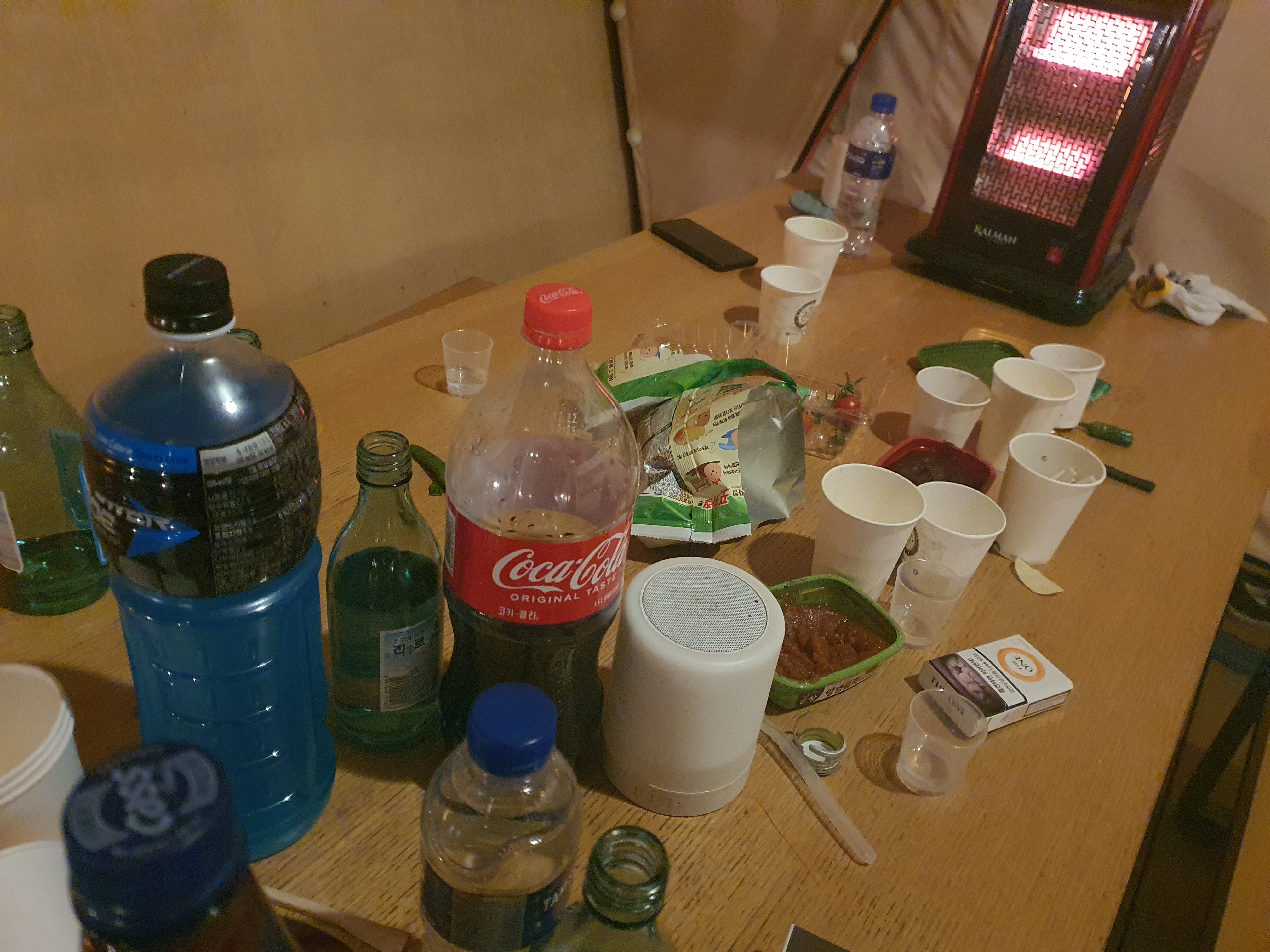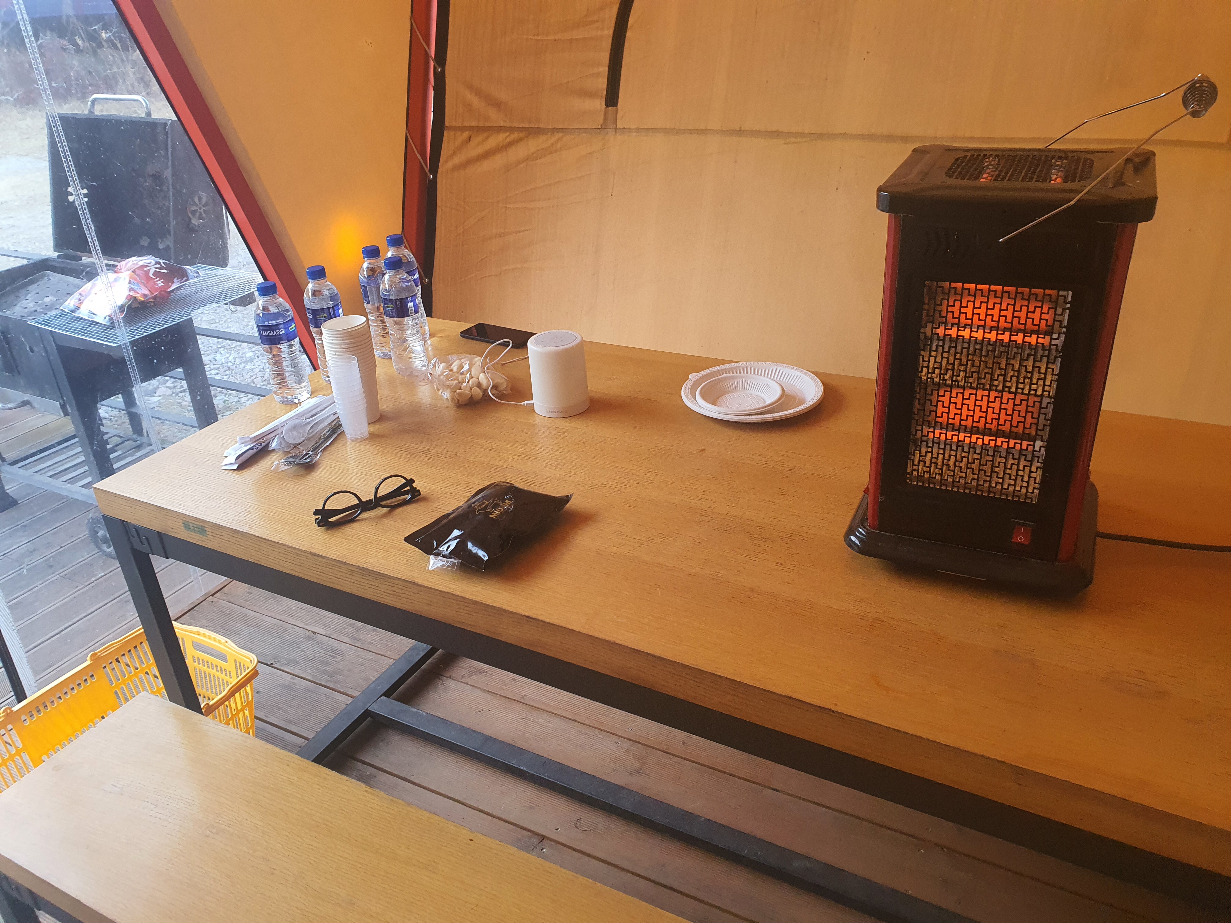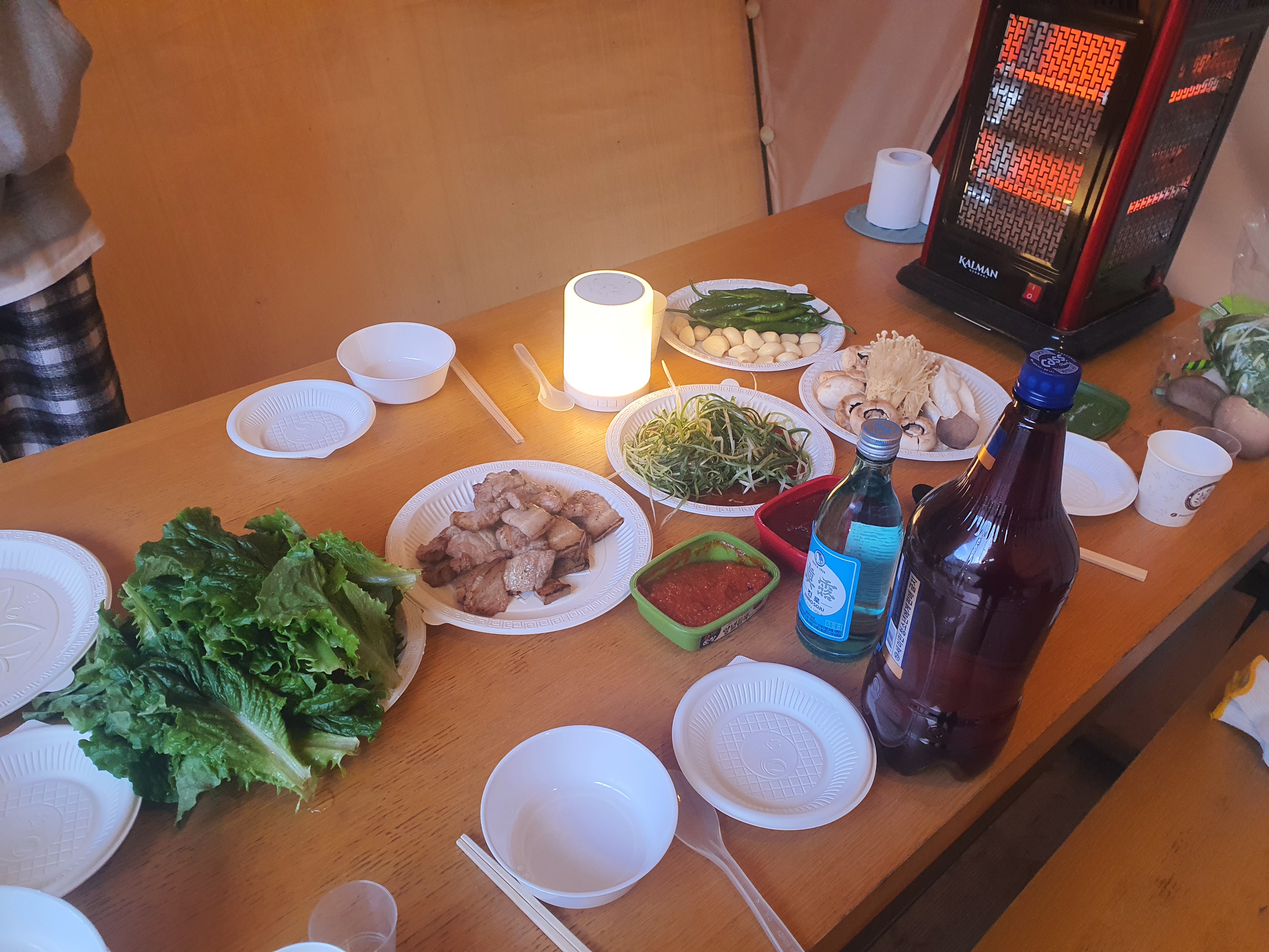 저녁이 되면 날씨가 매우 쌀쌀해지고 바람이 솔솔 들어와 춥기 때문에 난로를 셋팅해주고 즐길준비를 시작합니다.