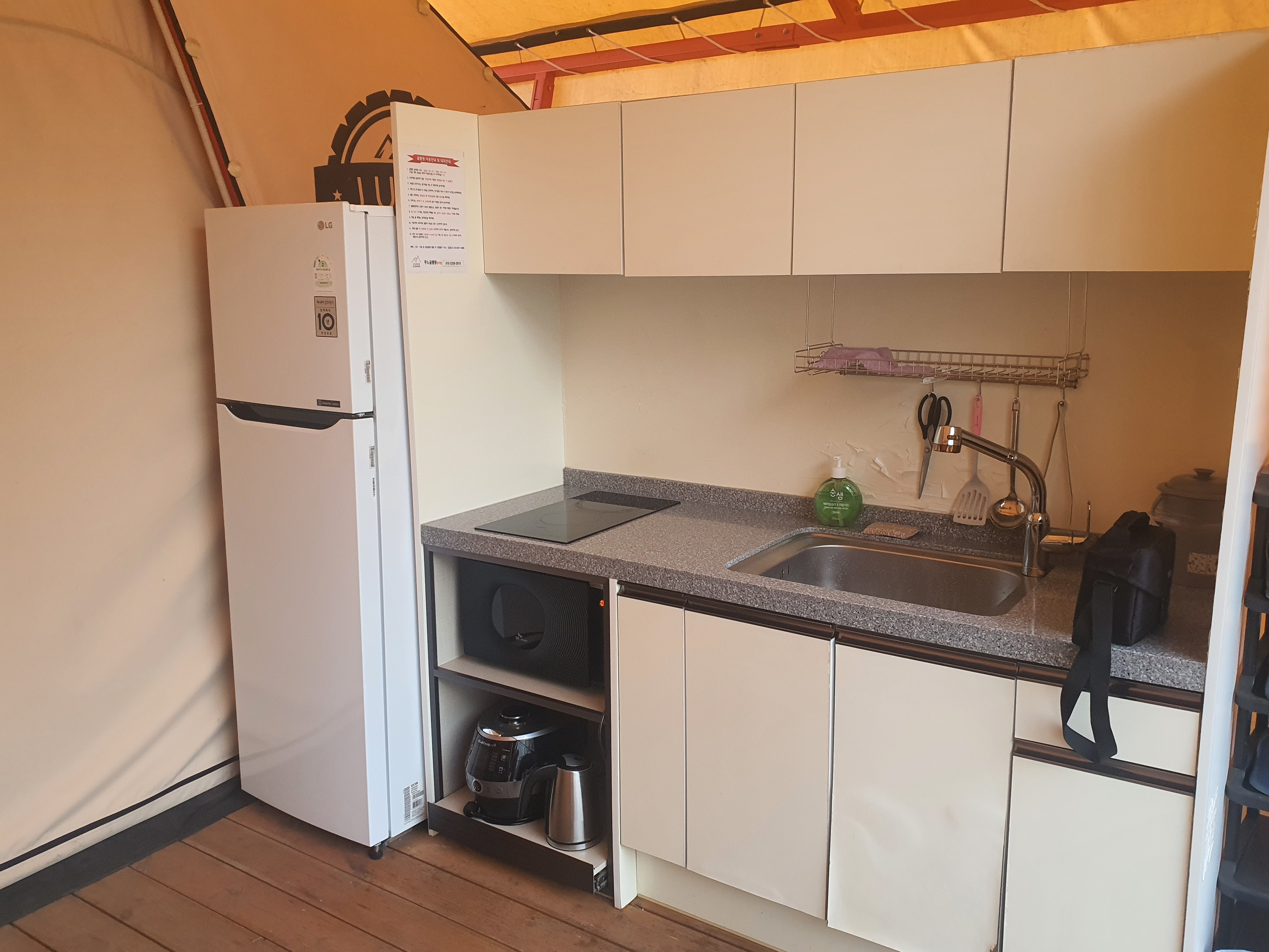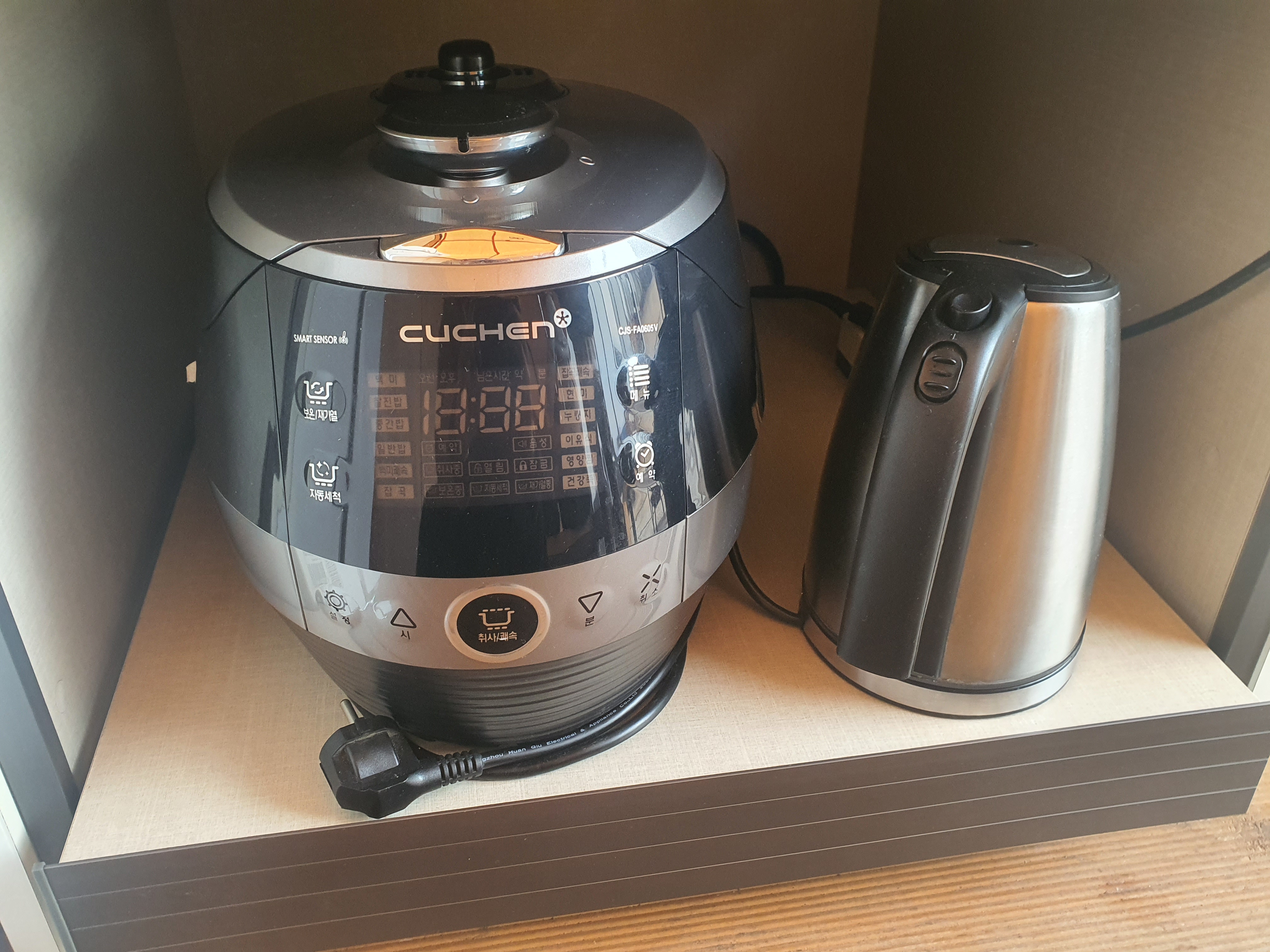 전자렌지도 있고 심지어 밥솥도 있고 냉장고 및 주방기기 그리고 음식먹을 그릇들까지 다 갖춰저 있네요.