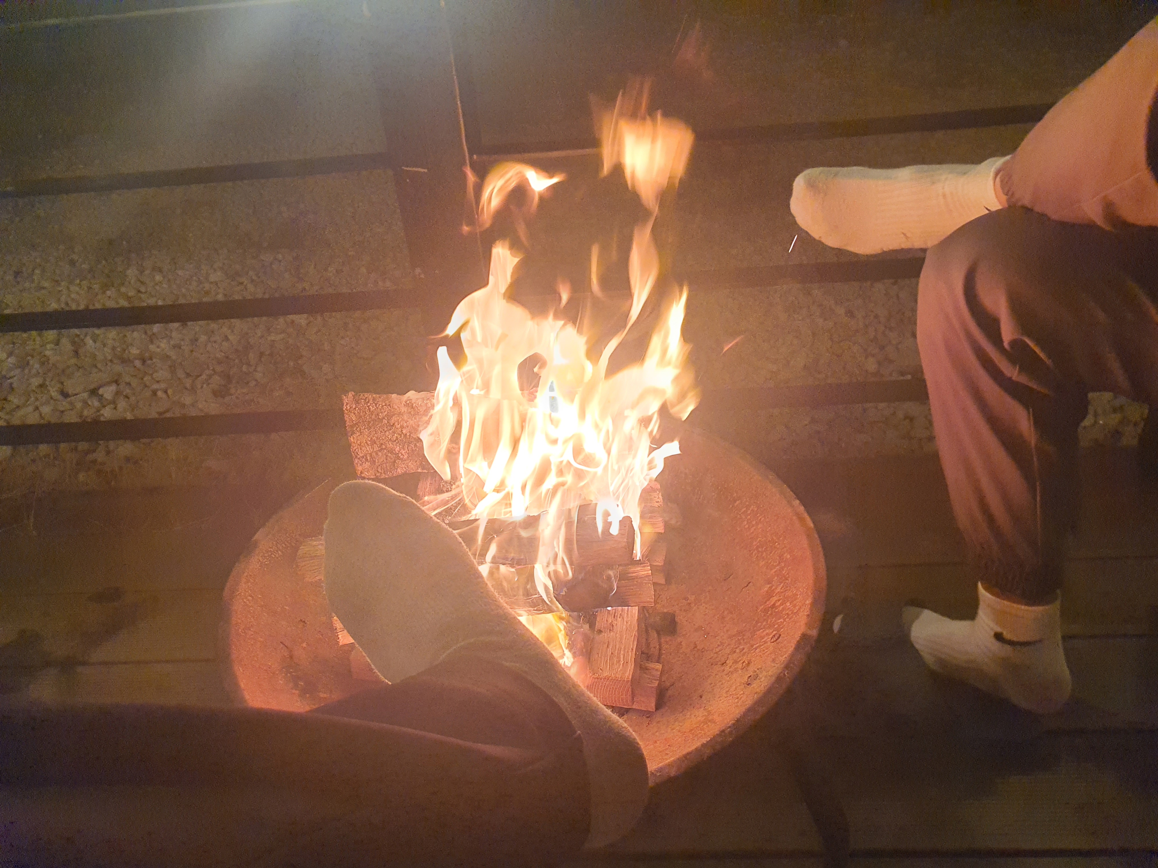밖에서 의자에 앉아 발을 녹이며 소소하게 이야기하면 그게 힐링타임 아니겠습니까?