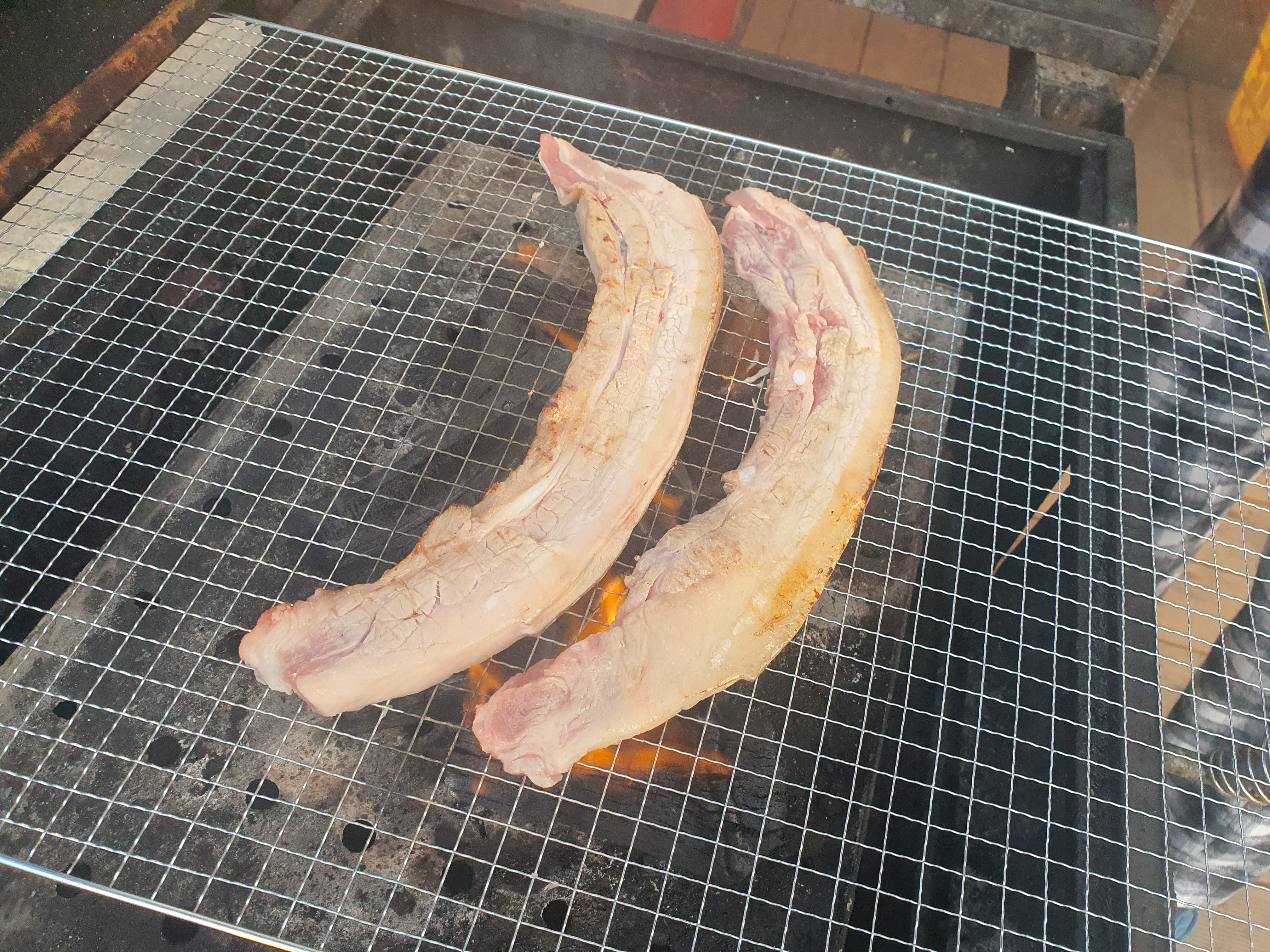 고기를 잘굽는 동생이 고기가 떨어지자 목살 부위를 열심히 굽어대고 있습니다.
