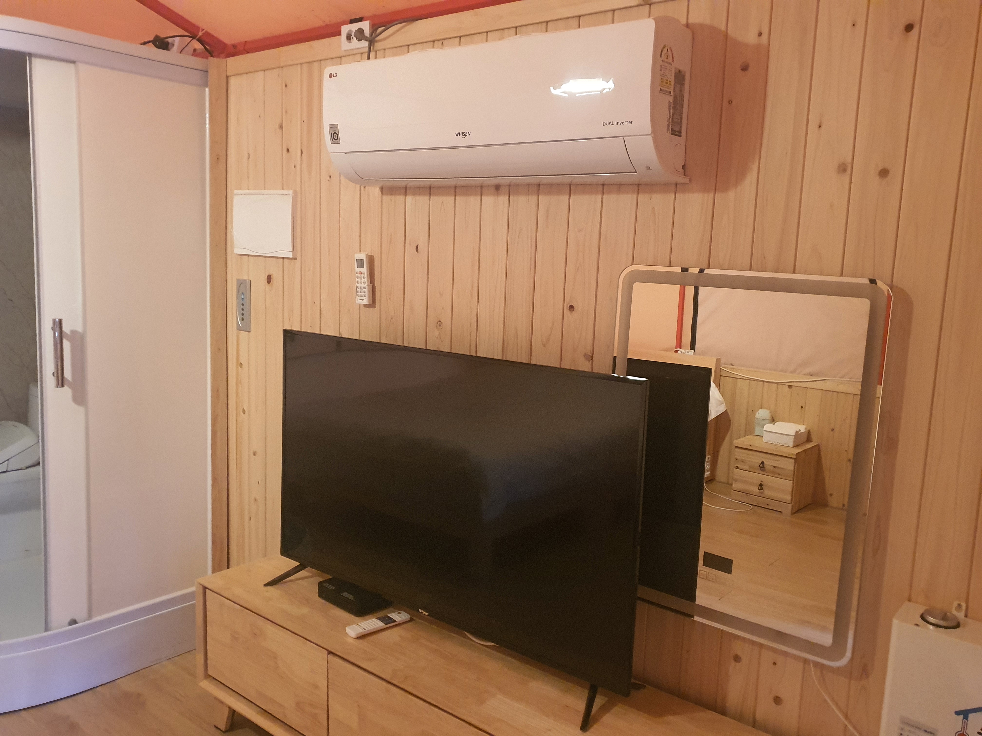 TV와 에어컨 및 침대 그리고 옷수납장도 있고 난방 시스템까지 잘되어있더라구요.
