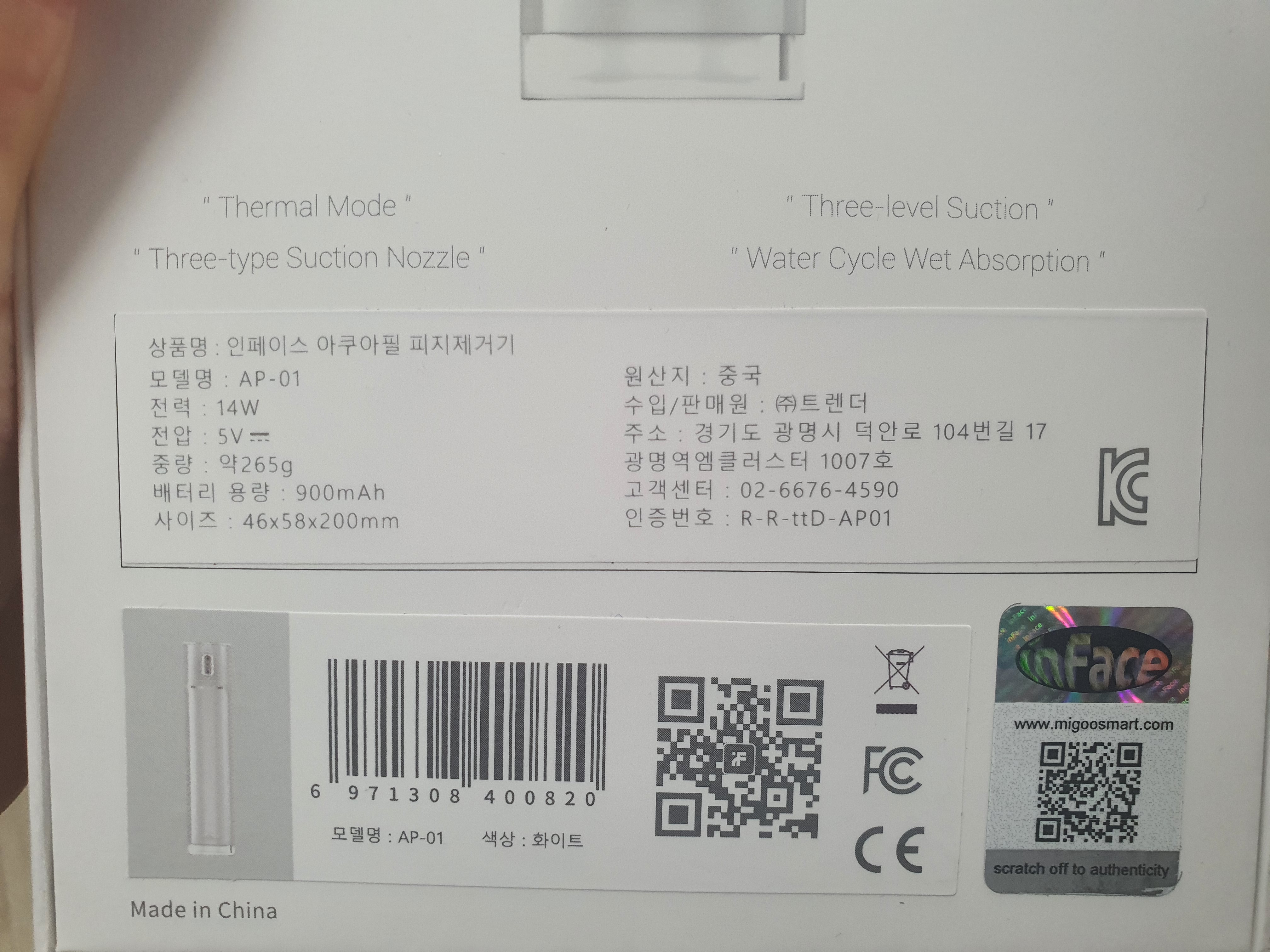 제품명은 샤오미 인페이스 아쿠아필 피지제거기 입니다.