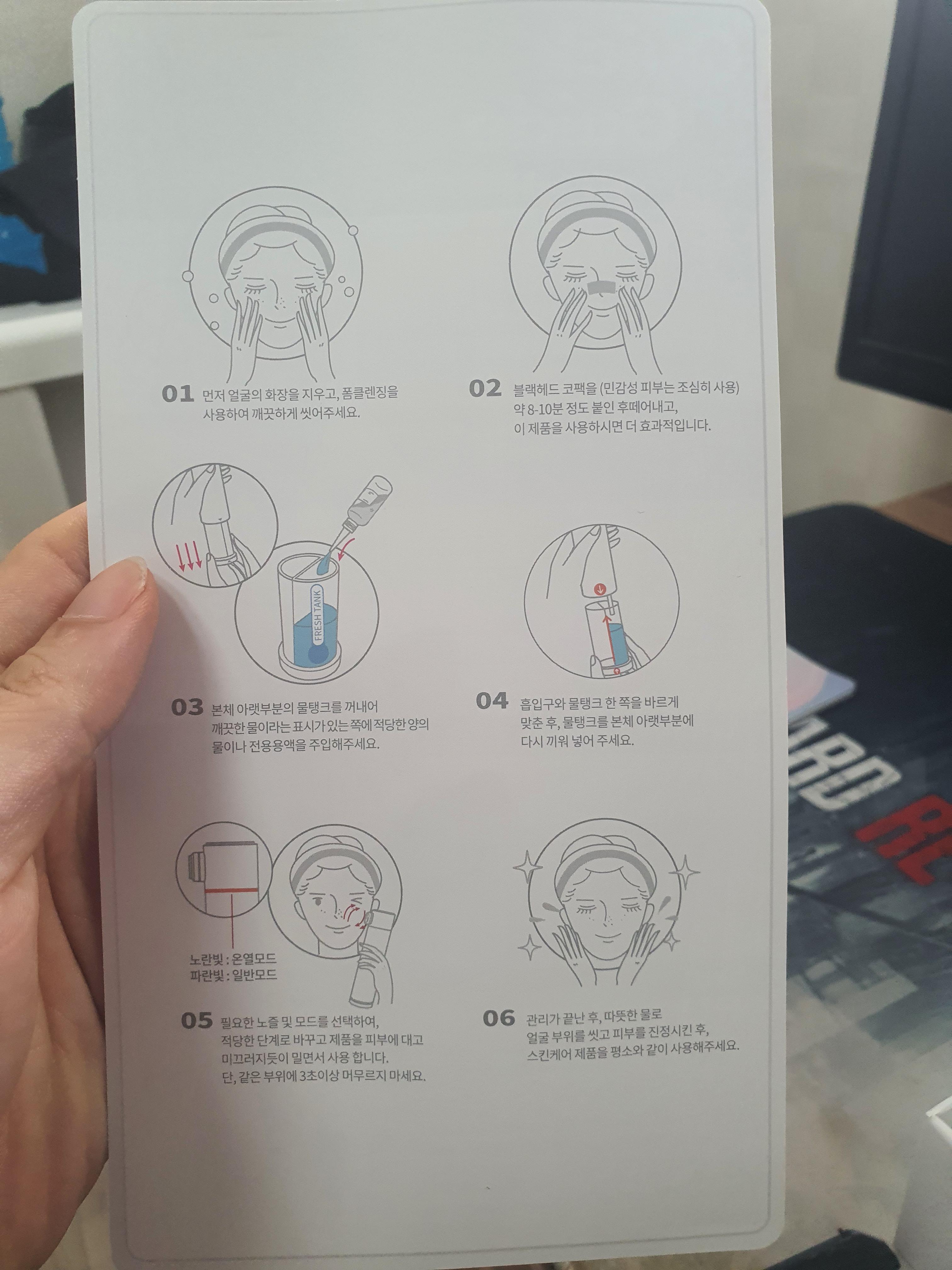 중요한점은 제품을 사용할때 같은 부위에 3초이상 머무르지 말라고 합니다.