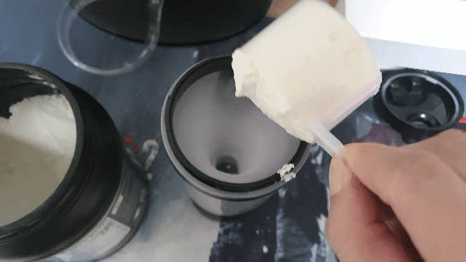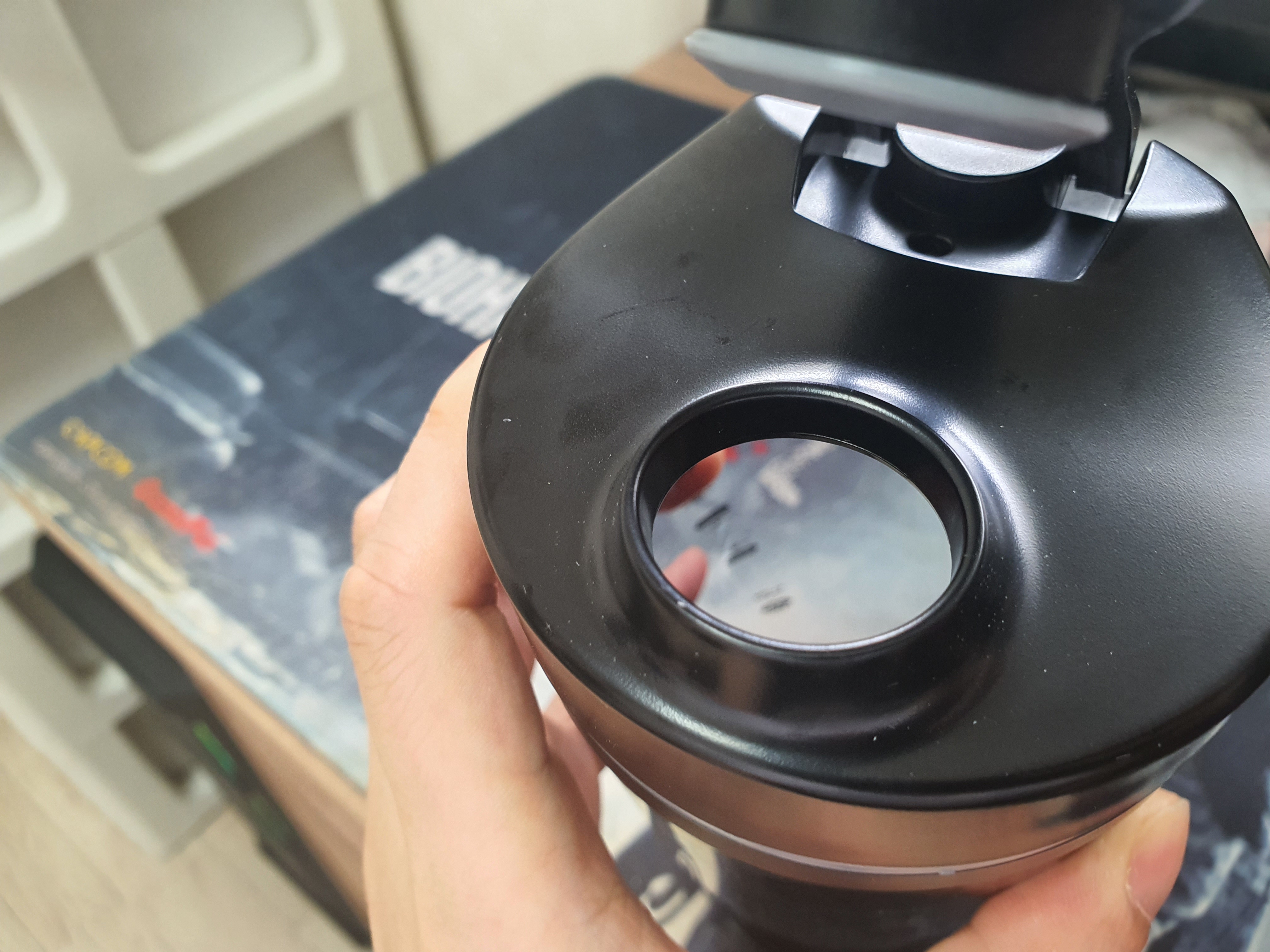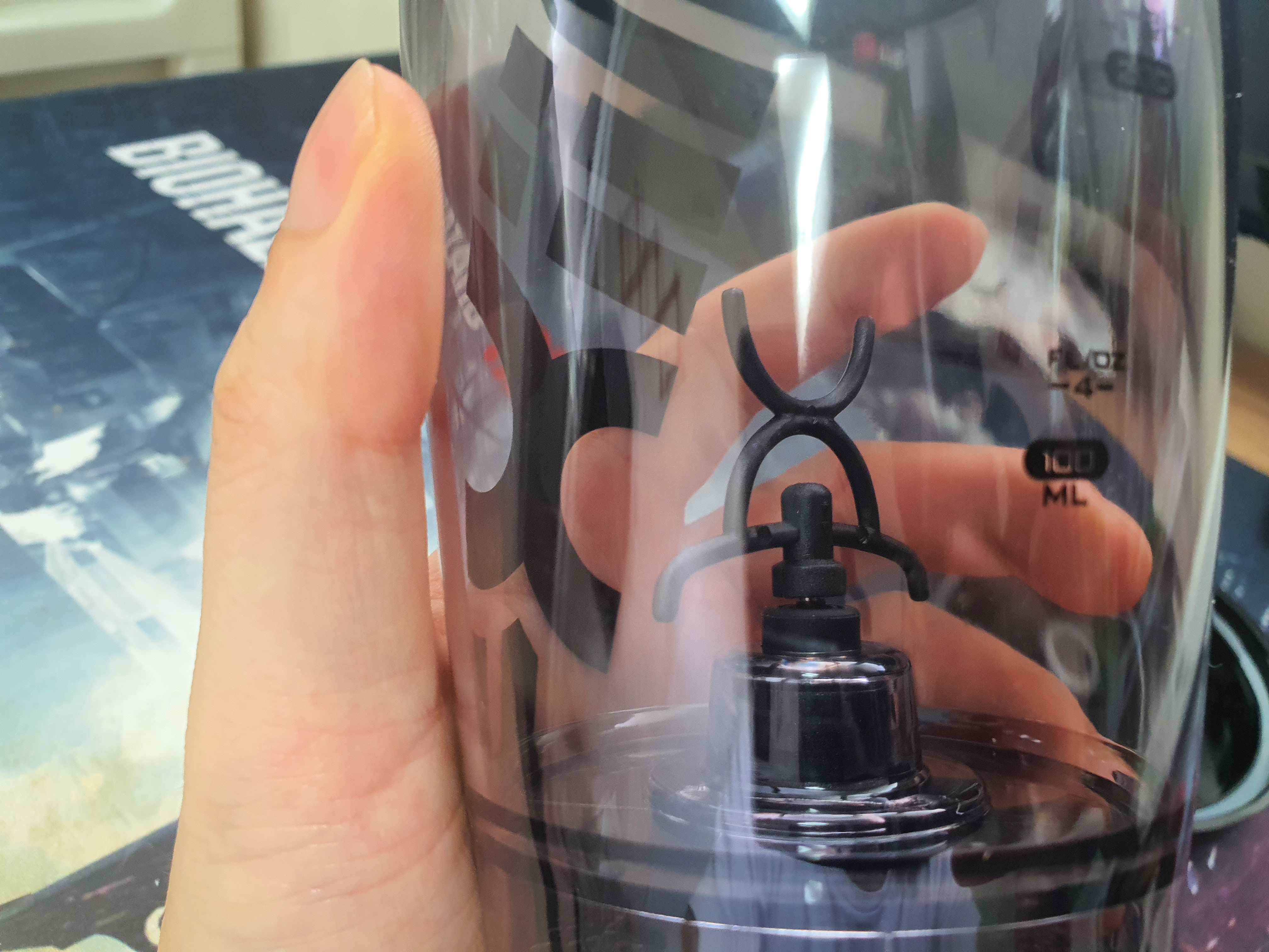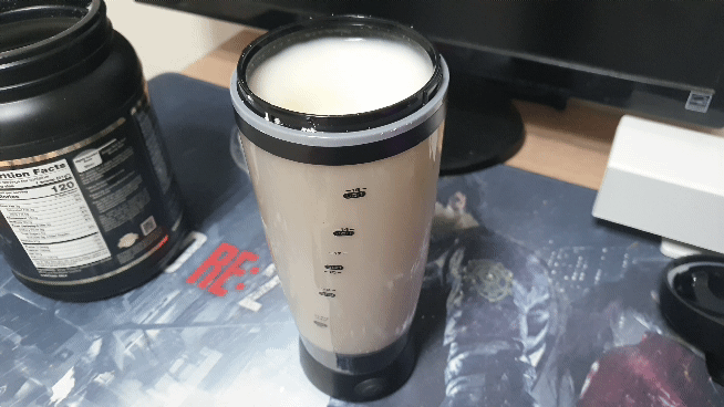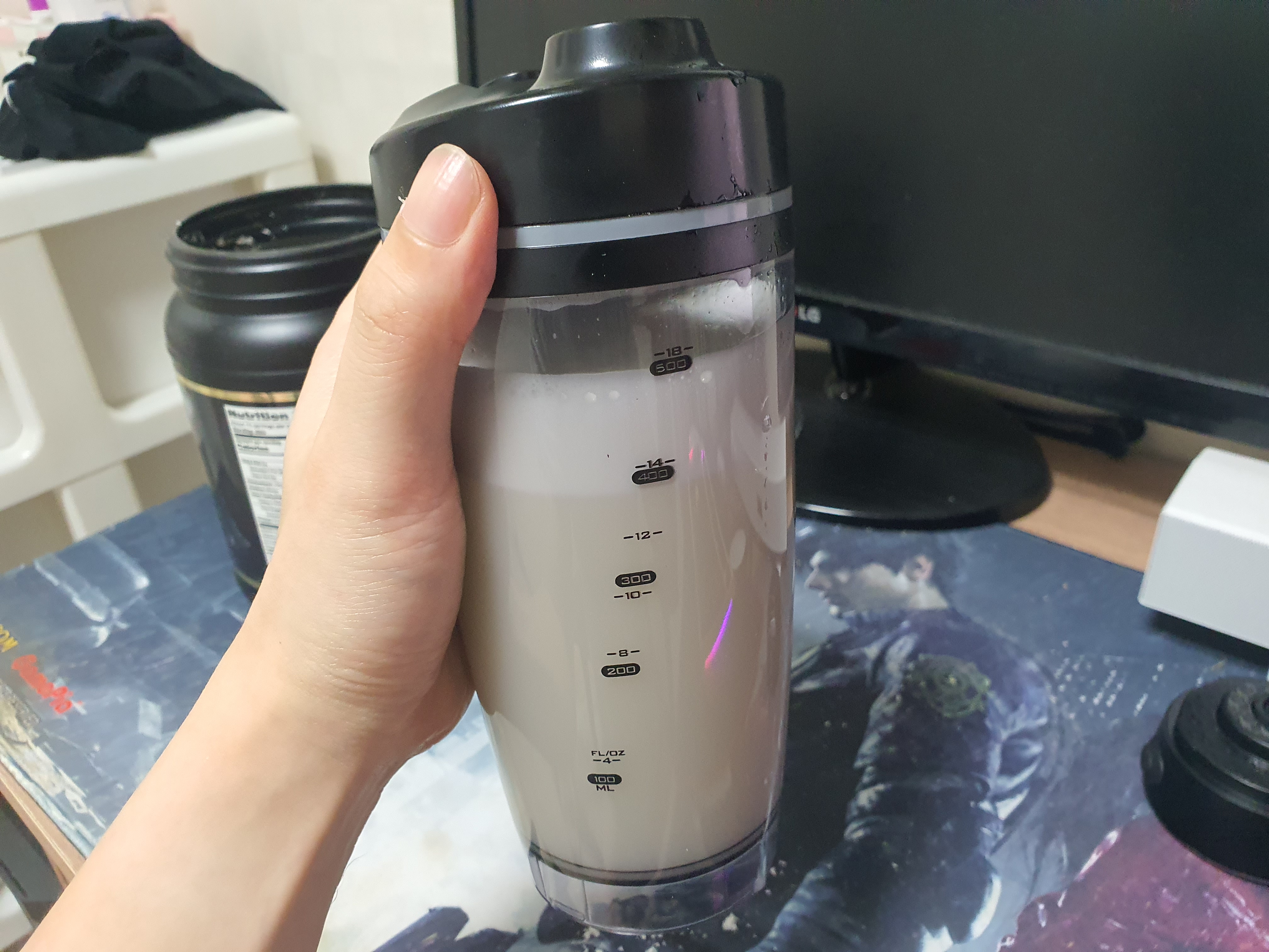 단백질 보충제를 넣어서 물과 함께 넣어 작동시킨 모습입니다.