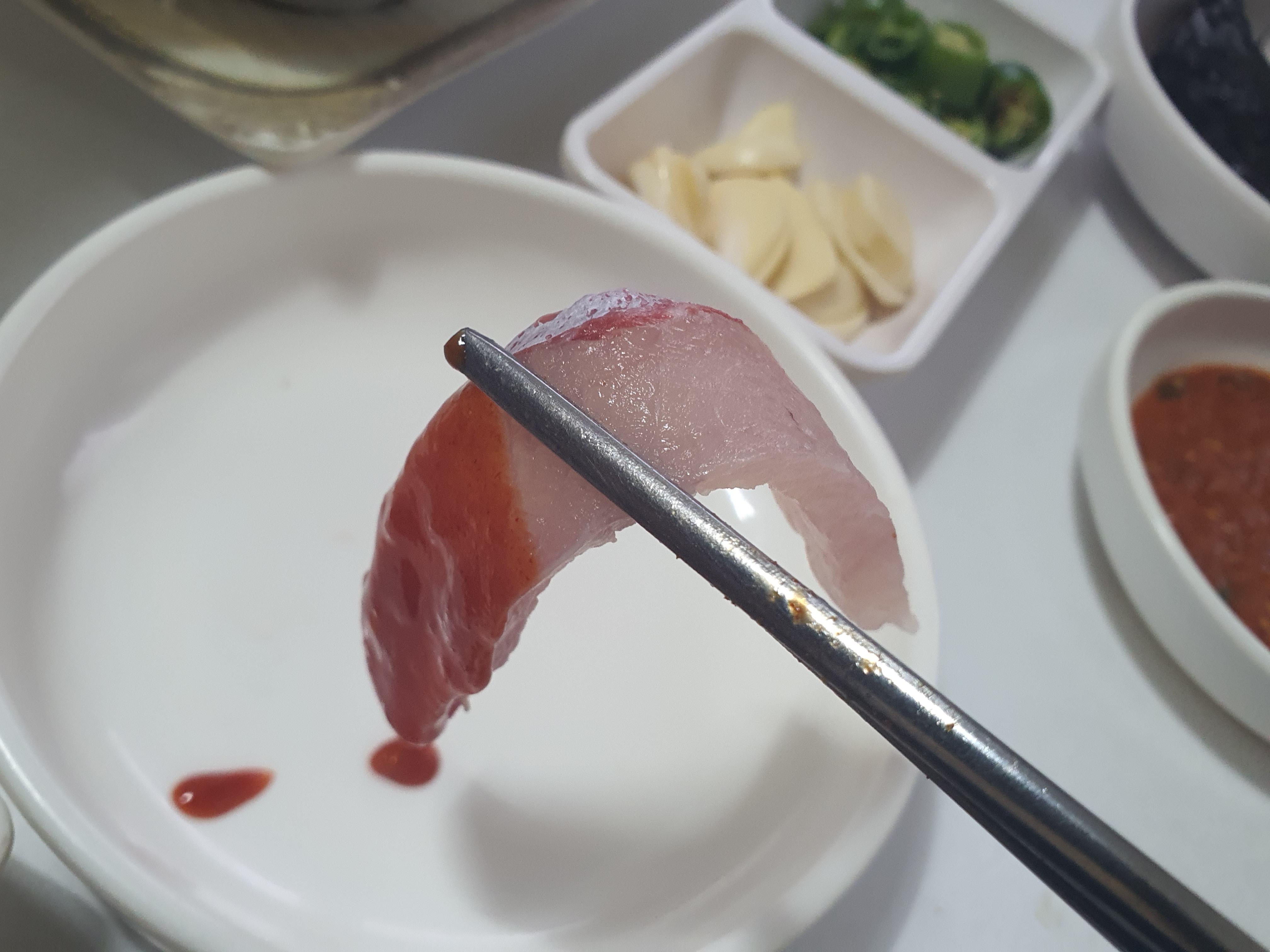 하얗고 빨간것이 제주도에서 바로 잡은듯한 싱싱함이 사진으로도 전해지지 않나요?