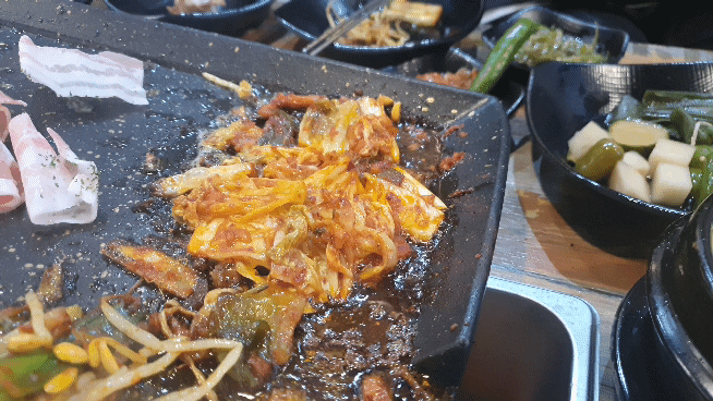 불판에 김치를 구워서 먹으면 엄청 맛나죠?