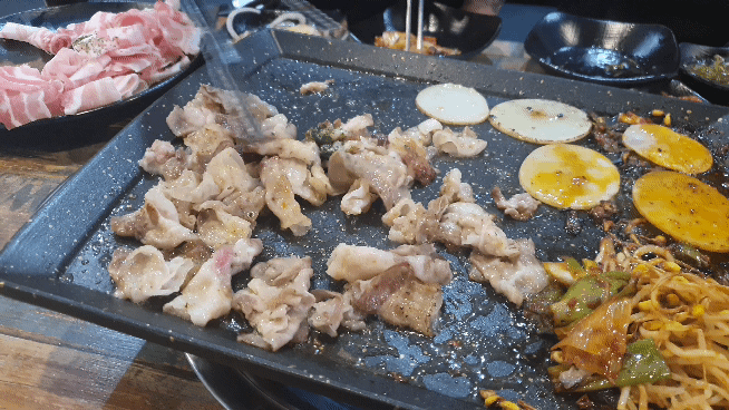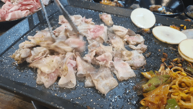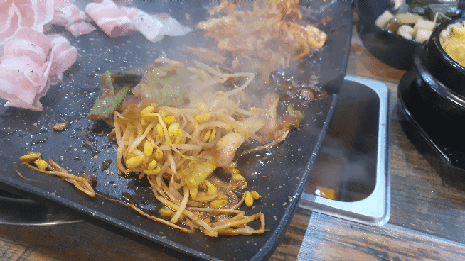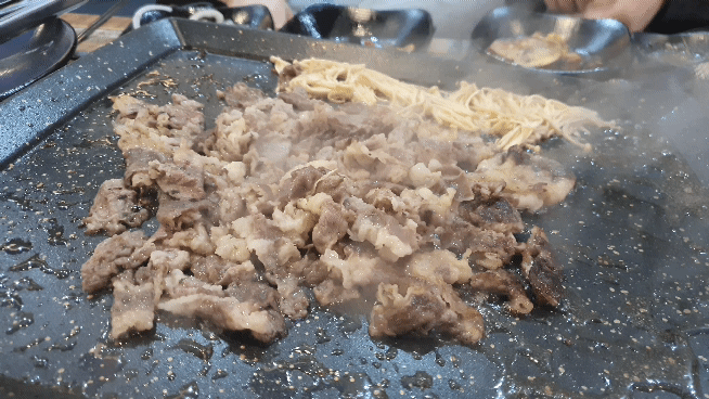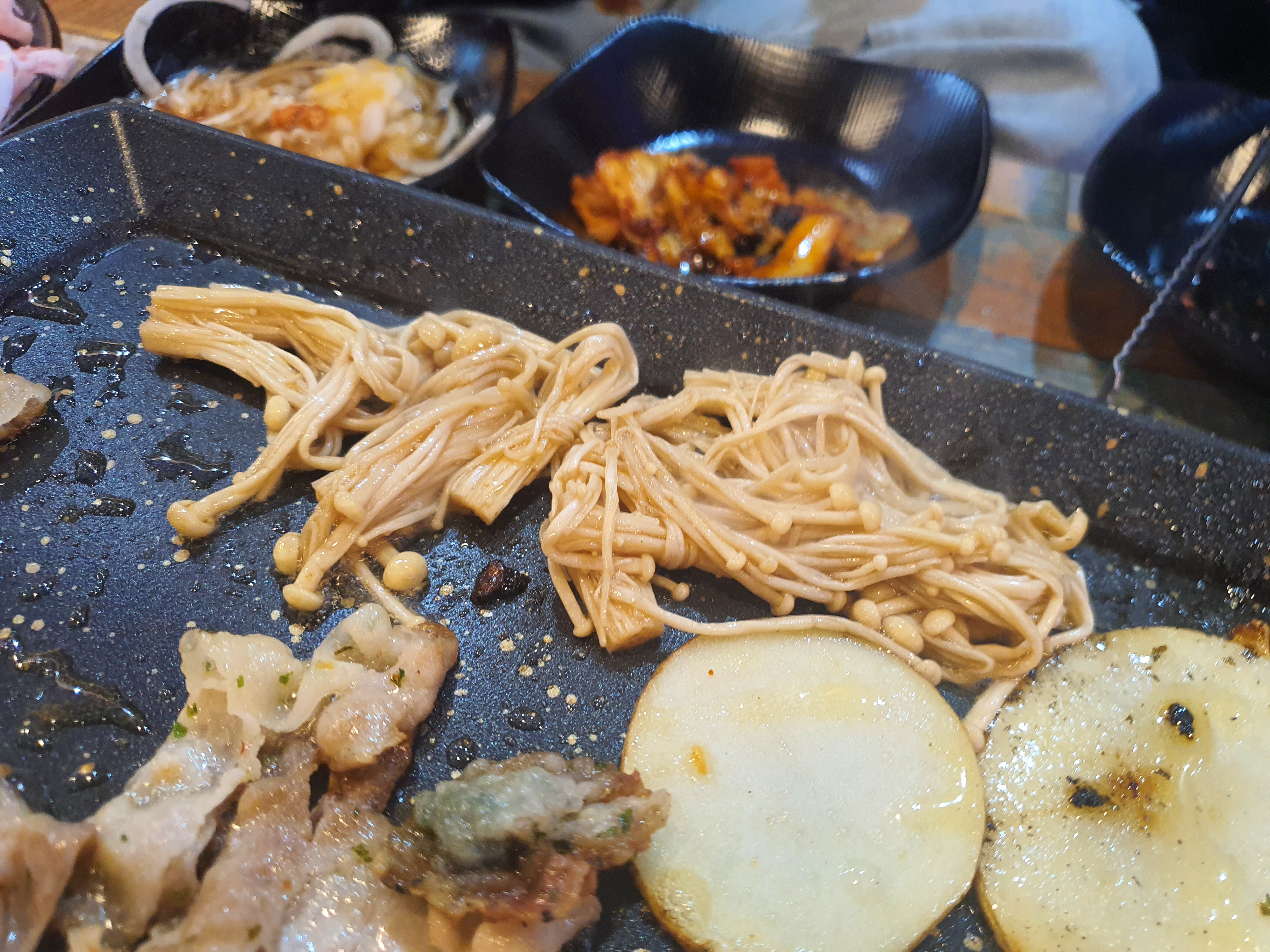 불판위에 여러가지 재료들도 올려주면 더 좋습니다.
